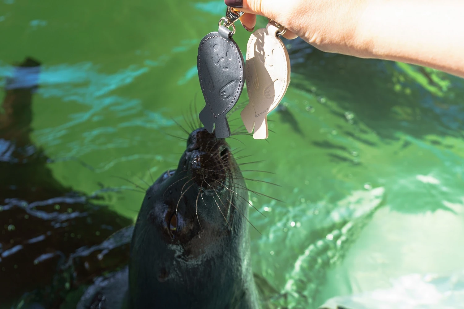Милые нерпы — это любовь) у дочки уже весь комплект: сумка, кошелек, обложка на паспорт и брелочек). Очень приятная тисненая кожа.