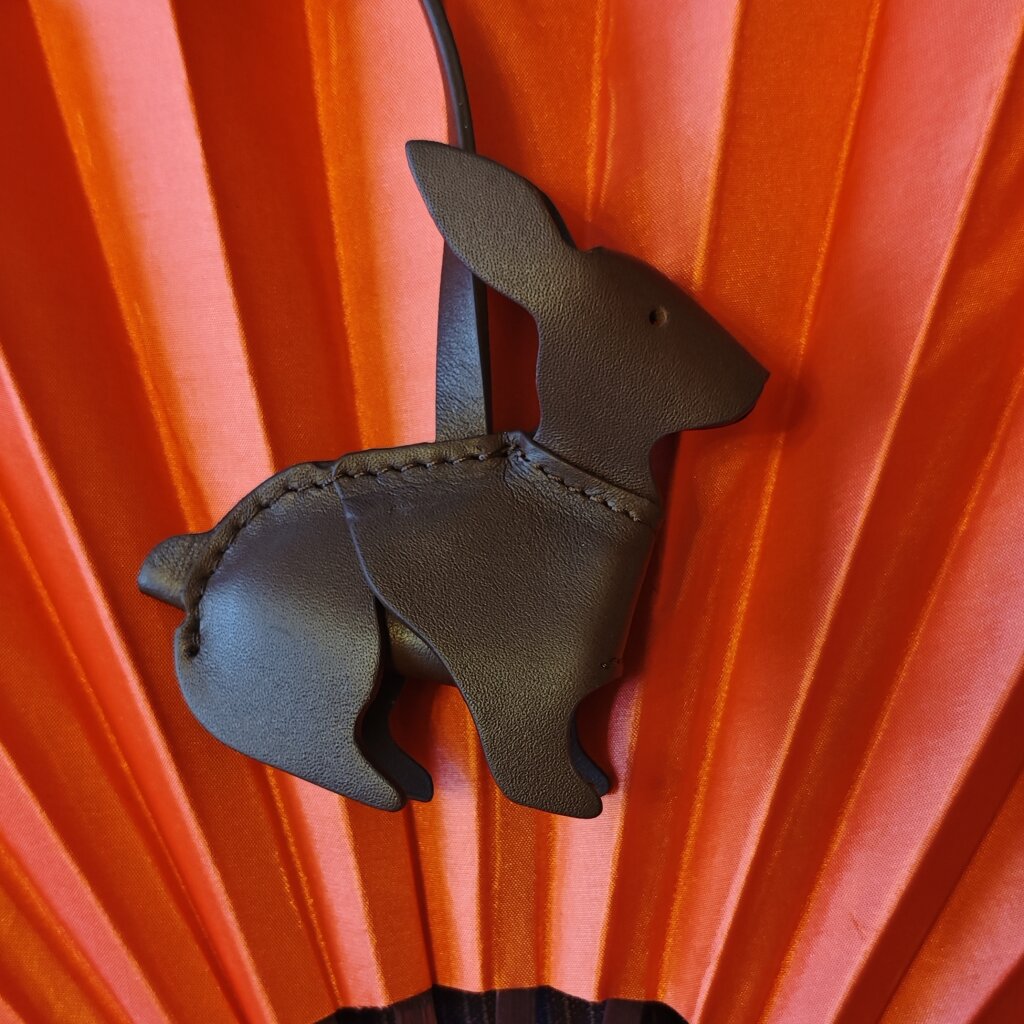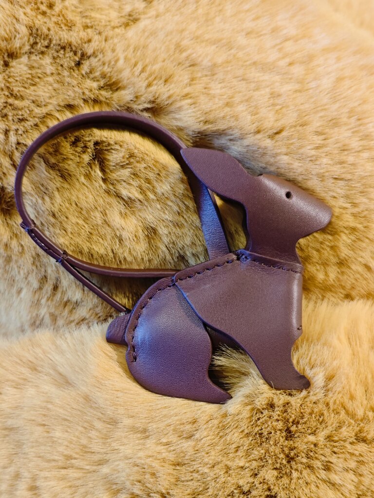 Очень хорошенький заяц. Красиво смотрится на сумке и как отдельная подвеска. Форму держит уверенно :)