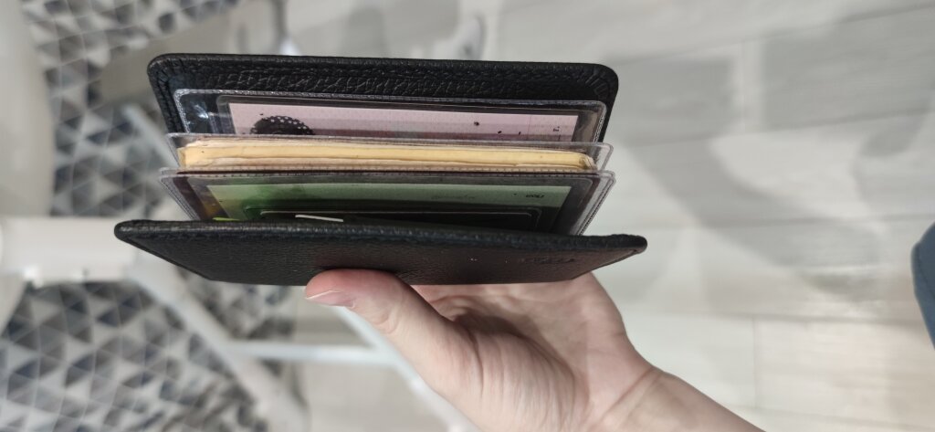 Здравствуйте. Если положить в него карточки то он не закрывается до конца, даже с паспортом не закрывается. Под не закрывается я имею ввиду то что в статичном виде он постоянно открыт. Положил в него паспорт, и документы от авто, одел поверху резиночку потому что иначе он вечно будет открыт как в кармане так и в сумке. Планировал отказаться от кошелька и пользоваться только бумажником водителя но так им пользоваться очень не удобно. По качеству все отлично и идея хорошая, но не продуманно. Я расстроен.