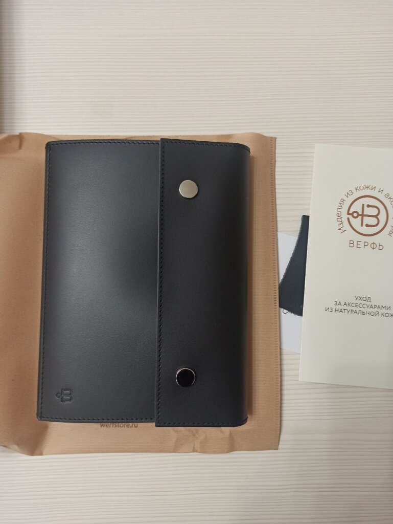 Прекрасный аксессуар, однако, на мой взгляд, есть пара моментов: 1 — не хватает «жесткости» (используя на столе, не замечаешь, а вот посидев в аэропорту…ощутил). Было бы здорово, если для жесткости была вшита пластина из тонкого пластика или металла; 2 — кнопки сверху добавляют изюминку, но 90%, в местах где тянешь нахлёст, чтобы открыть, кожа будет растягиваться (было бы целесообразно использовать вшитые магниты, а кнопки на лицевой стороне оставить как элемент декора (фальшами). Ну, это касается всех изделий бренда, не хватает чистого белого цвета, как в Малевиче, только без орнамента.