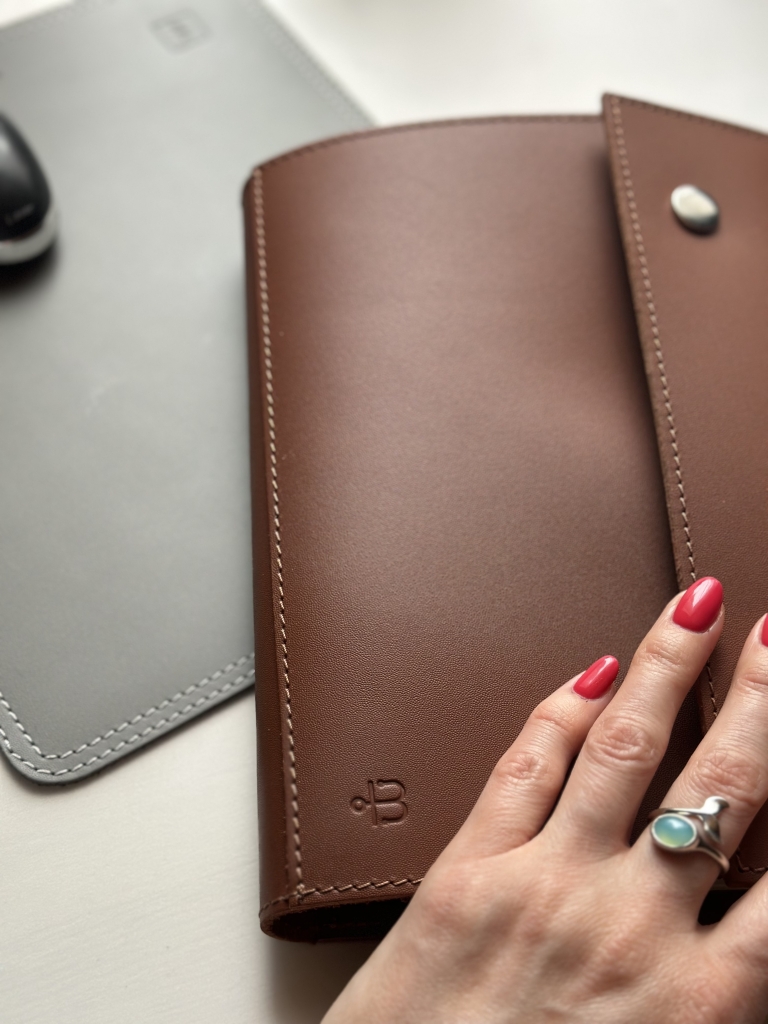 Очень стильный и качественный ежедневник, кожа хорошая, качественная, удобные страницы. Правда, я думала его носить в рюкзаке дельфинчик, но тяжеловат оказался) оставила для домашнего использования) может вы потом выпустите обложечку с кожей потоньше))