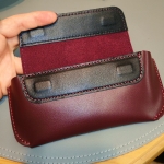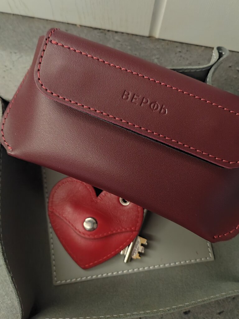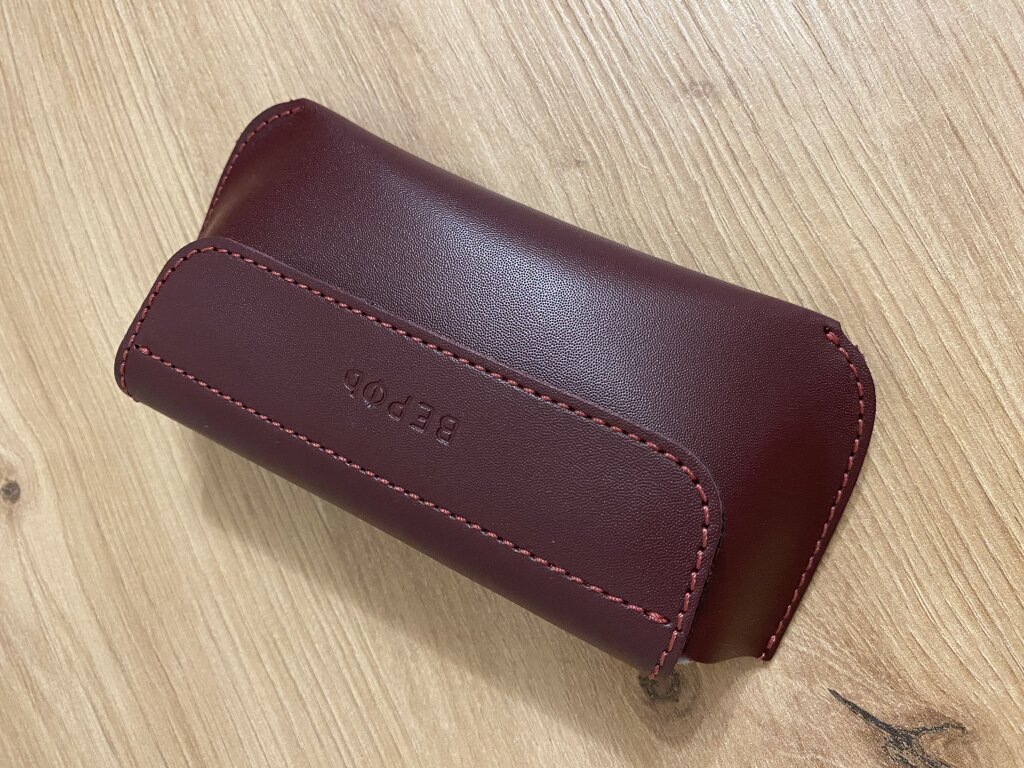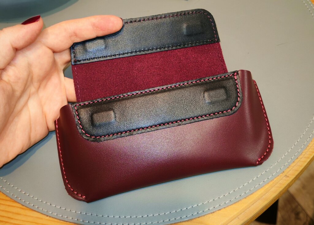 Чехол очень удачный: качественная кожа и насыщенный цвет. Размер достаточно компактный, чтобы поместиться в сумку. Удобно, что есть кармашек для салфетки.