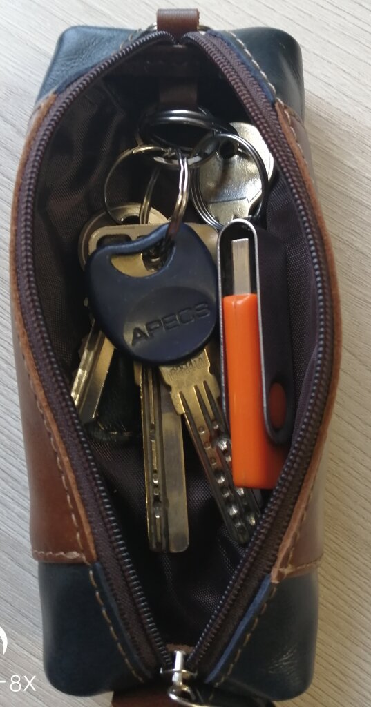 Ну и по мелочам добавлю к предыдущим отзывам — хотелось бы молнию в основной цвет ключницы, внутри иметь два кольца на цепочках и карабин снаружи вместо колечка, было бы гораздо удобнее в использовании и вряд ли сильно усложнит производство. Ну или добавить несколько вариантов на выбор. Купить и поставить их самому не проблема, но приятно было бы, чтобы сразу все было как надо. :)