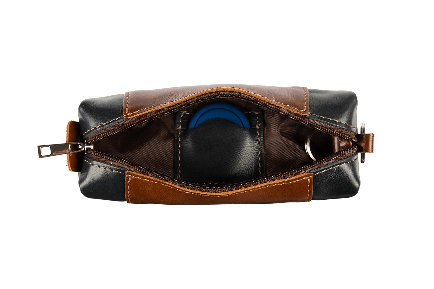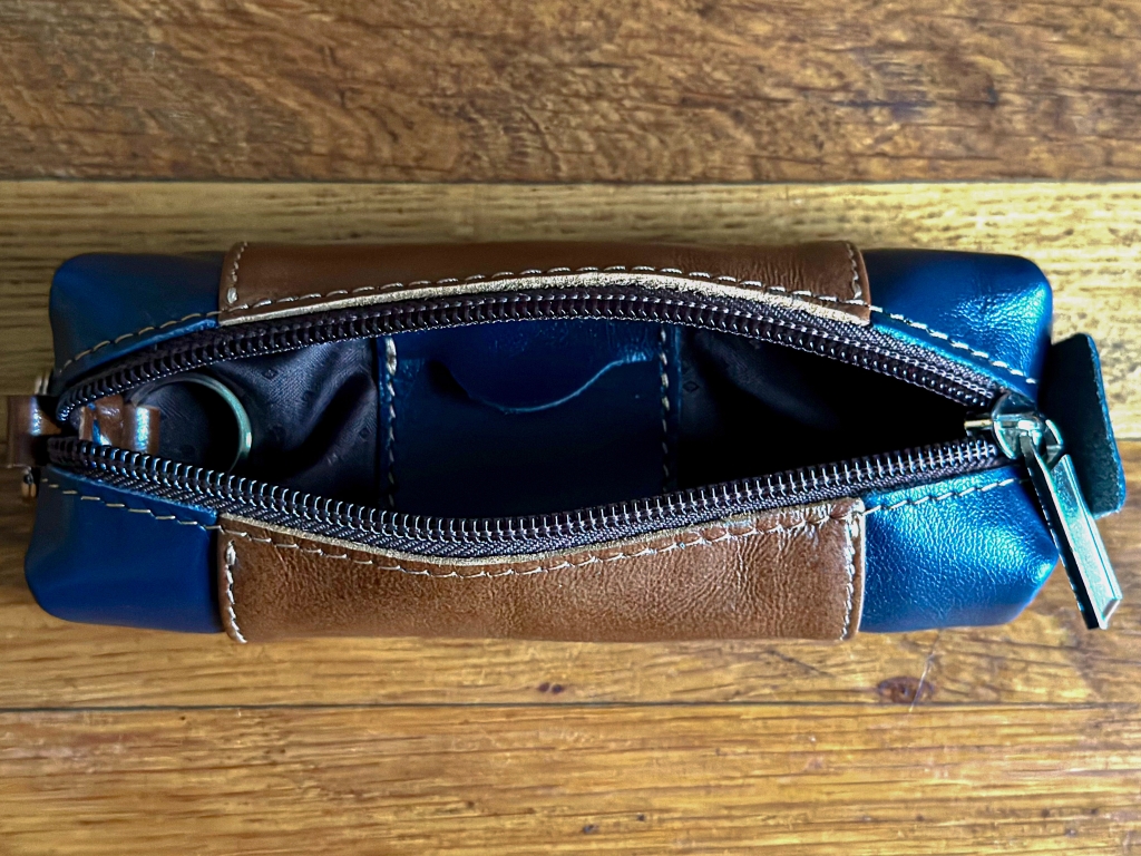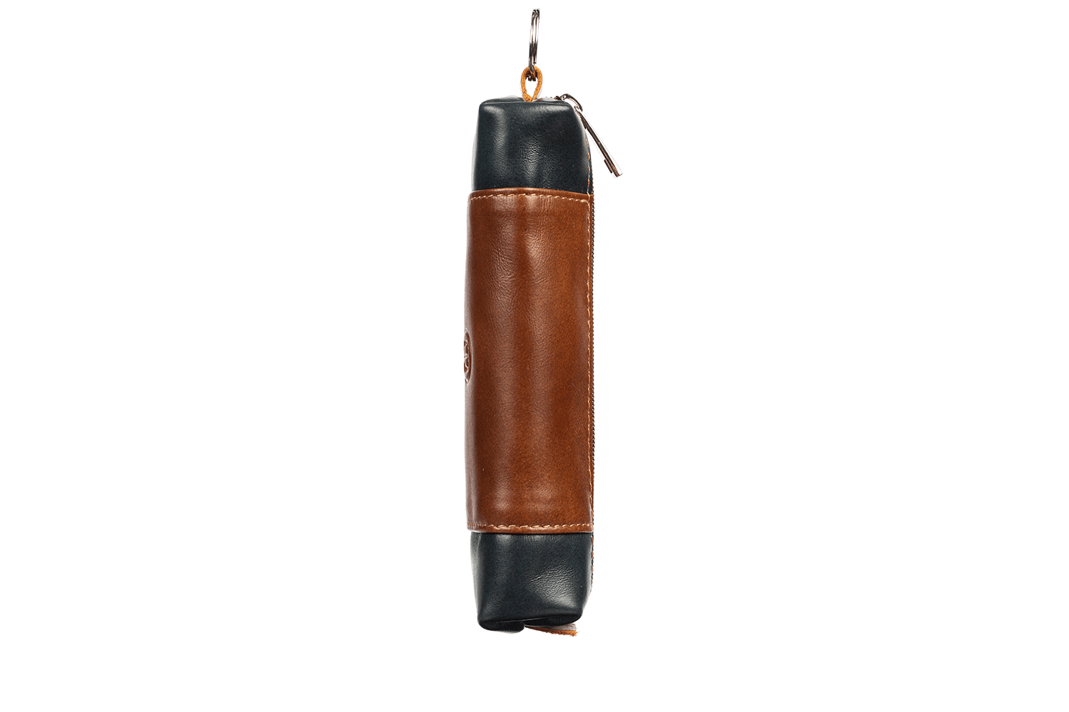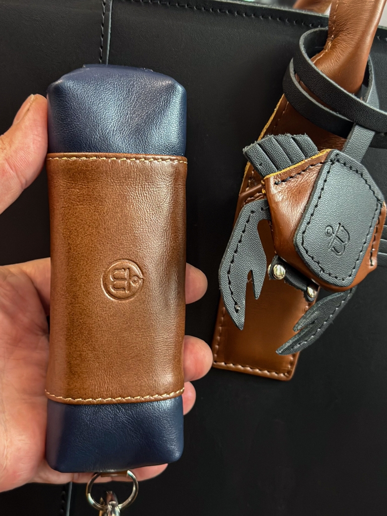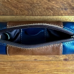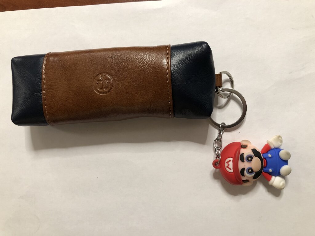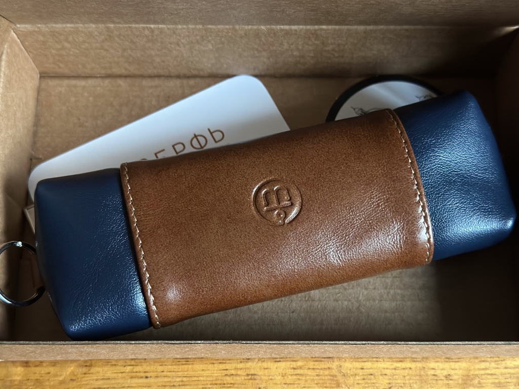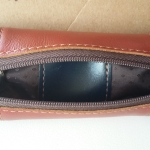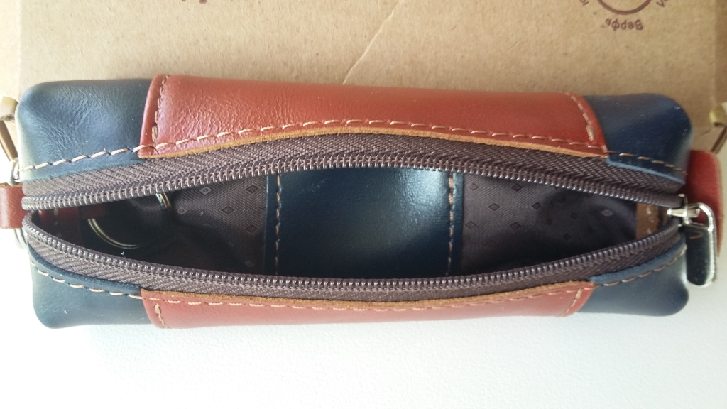 При покупке предупредили, что мне попалась из тестовой партии с немного другим оттенком кожи — вместо просто коричневого — оранжево-коричневый. На мой взгляд, этот цвет даже более удачный, на контрасте с синим очень хорошо смотрится (сравнивала со второй купленной ключницей с цветами наоборот, та в исходном коричневом цвете)