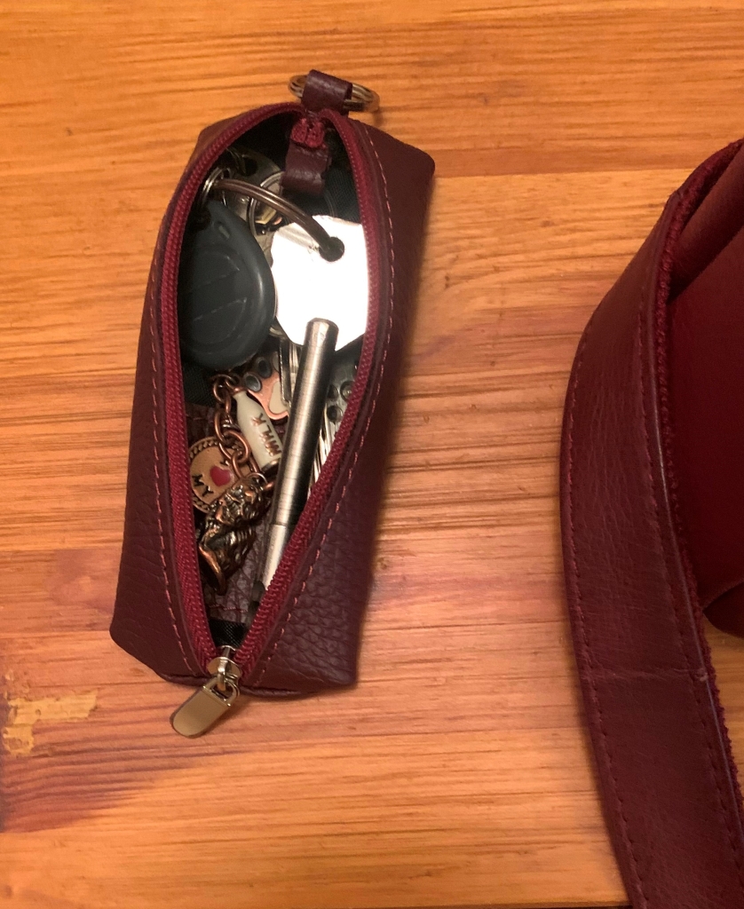 Ключница отличная, только вот когда открыла коробку думала что маленькую заказала. Но оказалось что попала в точку, очень довольна. Цвет красивый, пошив качественный.