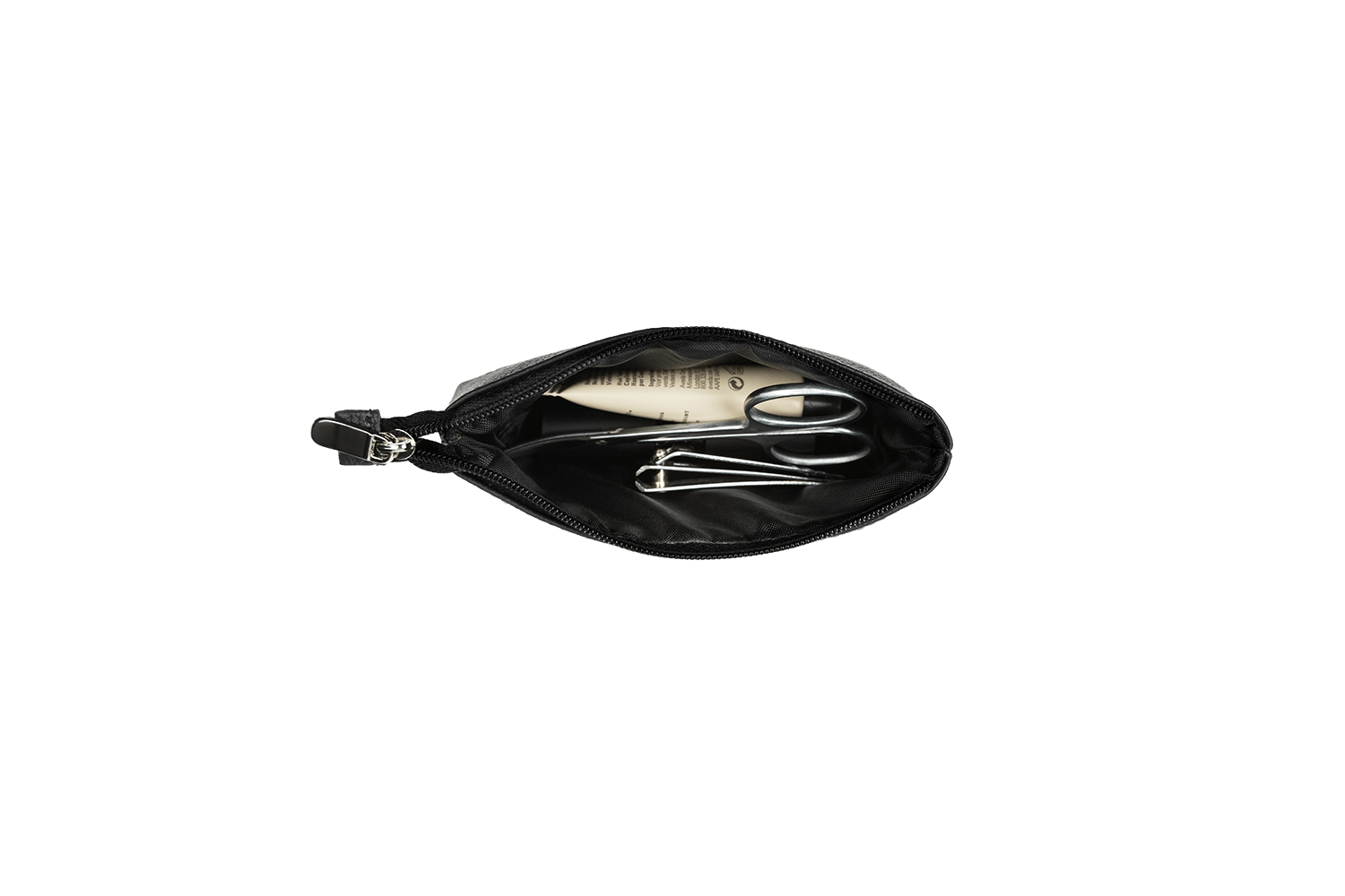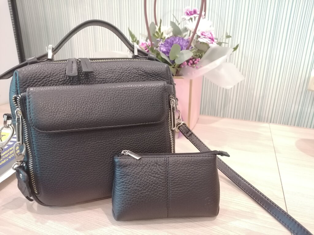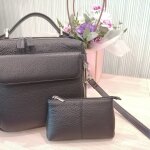 Под чёрную сумку купила чёрную косметичку. Кожа мягкая, вещь приятно брать в руки. Маленькая, занимает мало места в сумке. В неё поместилось зеркальце, таблетница, крем для рук, бальзам для губ. Меня порадовала покупка. Персонал очень внимательный: по телефону уточнили заказ, приятно пообщались. Приятное впечатление от покупки и магазина. Буду ещё покупать