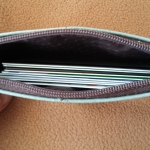 Заказала сразу 4 разных цветов, хотела на подарок. Ну очень маленькие несессеры. Если только для карточек. Никакая тушь и карандаш туда не поместятся, даже не надейтесь. Тактильность кожи не впечатлила, хотя в отзывах прям восторг. Упаковка конечно аутентичная, коробочка из картона, не очень подходящая по размеру, дарить в такой так себе вариант. Вообщем, щенячьего восторга не испытала, но компании явно есть куда стремиться, и я от души желаю успехов и удачи!