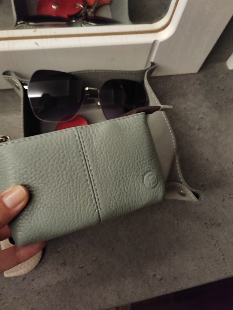 Нессесер приобрела специально для хранения для карт, которые используются не ежедневно. Очень покупкой довольна. Нессесер небольшой, аккуратный, симпатичный, легкий. Для планируемой функции идеален. Очки приложила для определения размера.