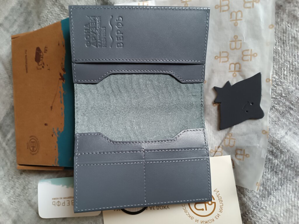 Сумочка и обложка просто чудесные, цвет, который вживую смотрится еще лучше чем на фото. Это именно то, что я хотела. Подарок мужу дожидается в прекрасной коробочке. Большое спасибо.