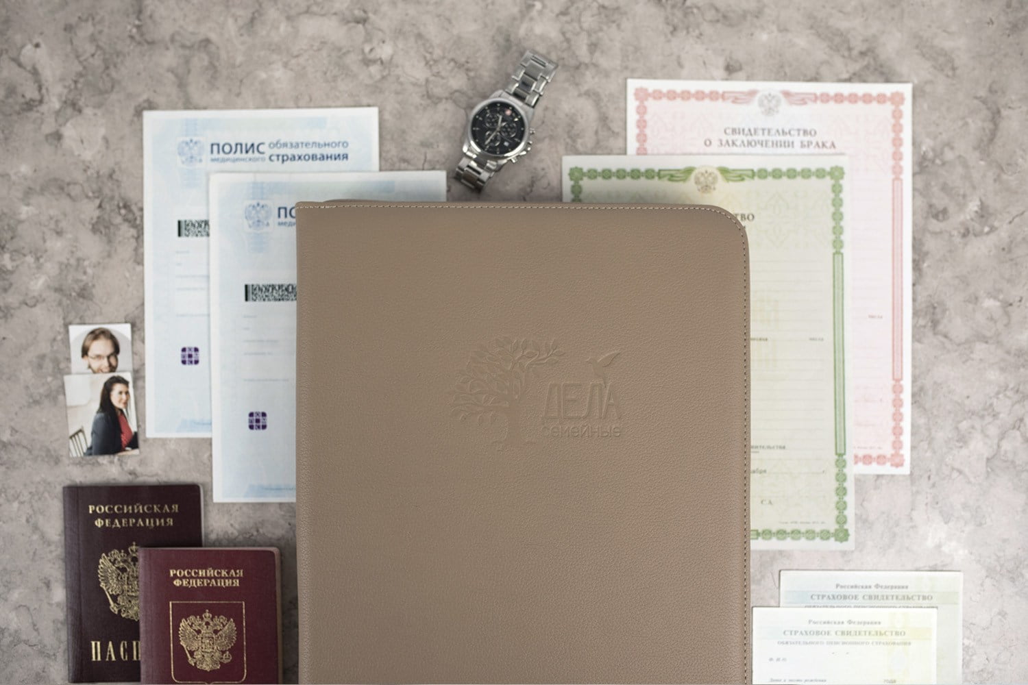 Также у нас есть папка Дела Семейные из искусственной кожи. У нее отличается не только материал, но и дизайн разворотов.