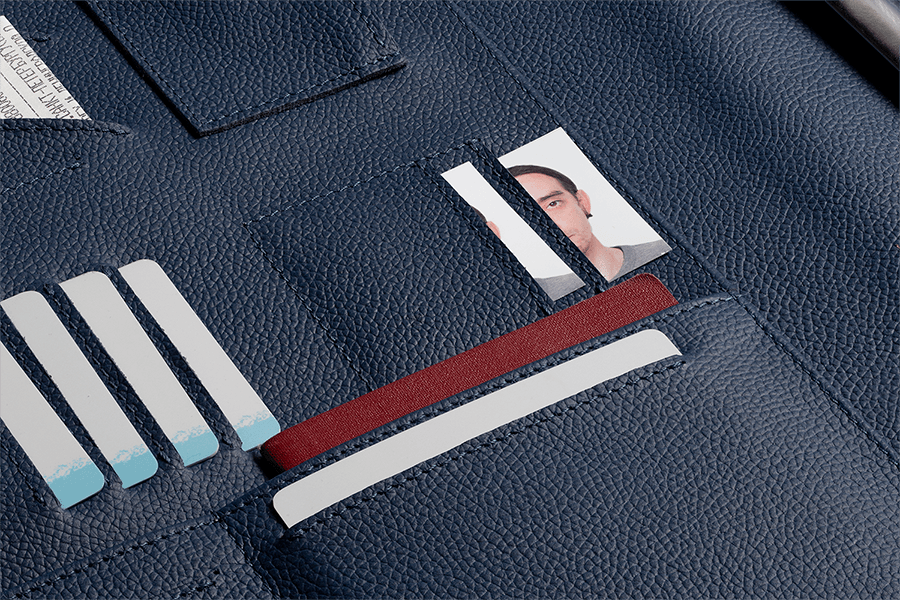 - На первом кожаном развороте предусмотрено место для важных вещей и того, что нам нужно чаще всего: паспортов, СНИЛС, пластиковых карт, флешки и фотографий на документы.