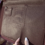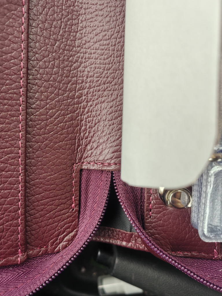 Что касается подкладки, она вшита с использованием специальной технологии, чтобы кармашки не оттопыривались из-за большого наслоения. Мы понимаем, что натуральная кожа может иметь некоторые особенности, такие как замятия в местах сгиба, особенно в области молнии, так как это подвижная часть. Это нормально для натуральных материалов.