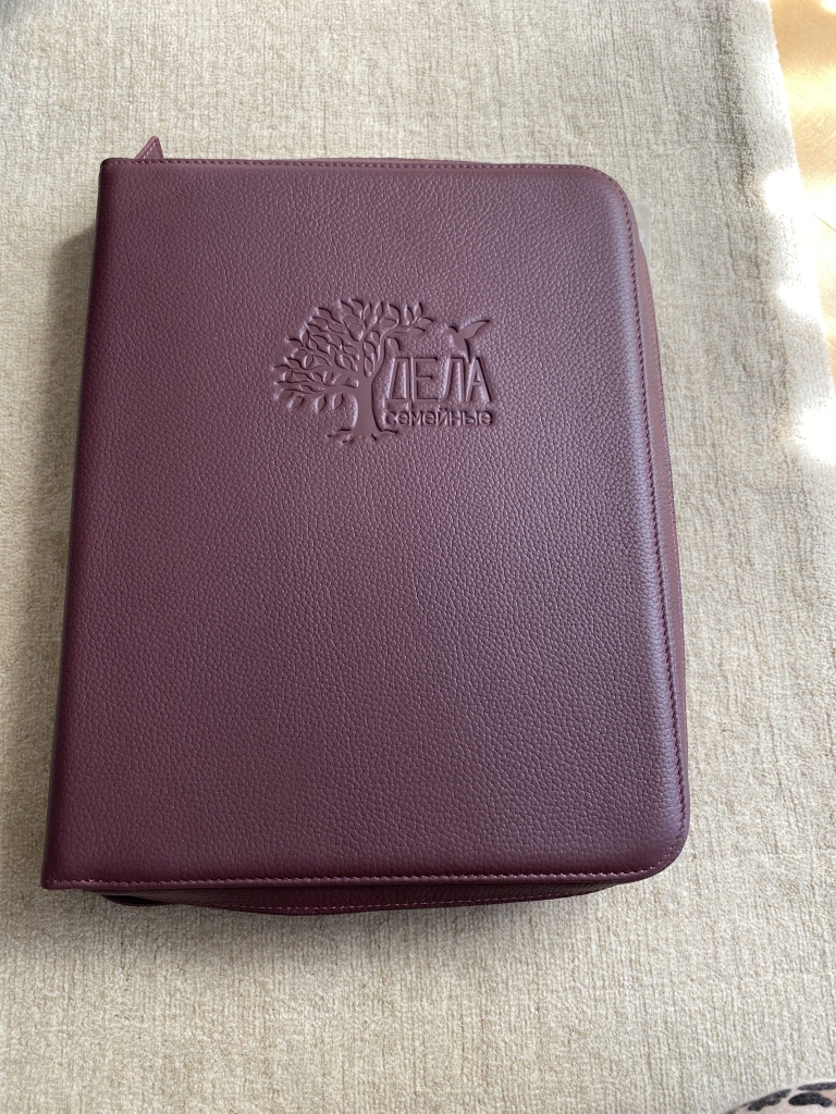 Папка «Дела семейные»- достойный подарок на юбилей. Цвет — не сочный бордовый, а приглушенный, но красивый, благородный. Подарок понравился. Выражаю благодарность за отличное качество, хорошее оформление.