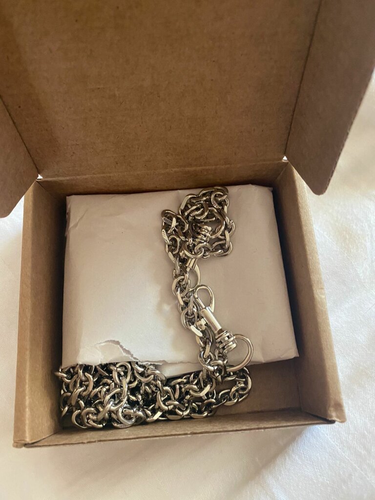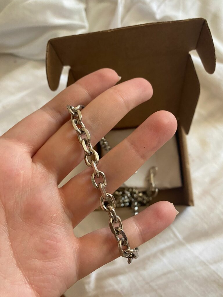 Хорошая, качественная цепочка. К футляру для очков, который приобрела ранее, она не очень подходит, на мой взгляд. Слишком громоздкая, тяжелая и длинная, очешник с очками почти невесомый по сравнению с ней. Я ждала, что это будет что-то вроде цепочки для очков, но с карабинами. Но для любой сумки отлично подойдет
