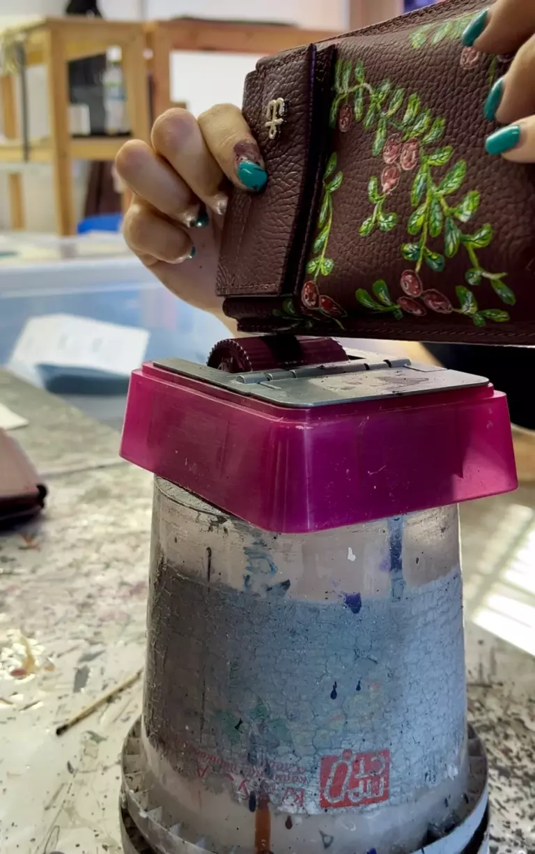 Почему «просто» в кавычках? Мы были на одном крупном производстве сумок в Турции, так вот, там цех покраски по площади занимал примерно треть производства. И видов оборудования, которые там стоят, больше, чем в любом другом цеху. Хотя ребята только и делают, что красят края. У нас тоже в кабинете покраски куча всяких приспособлений, штучек, оборудования и т.п.