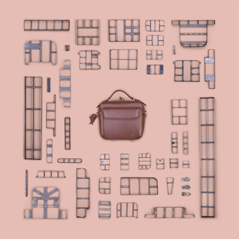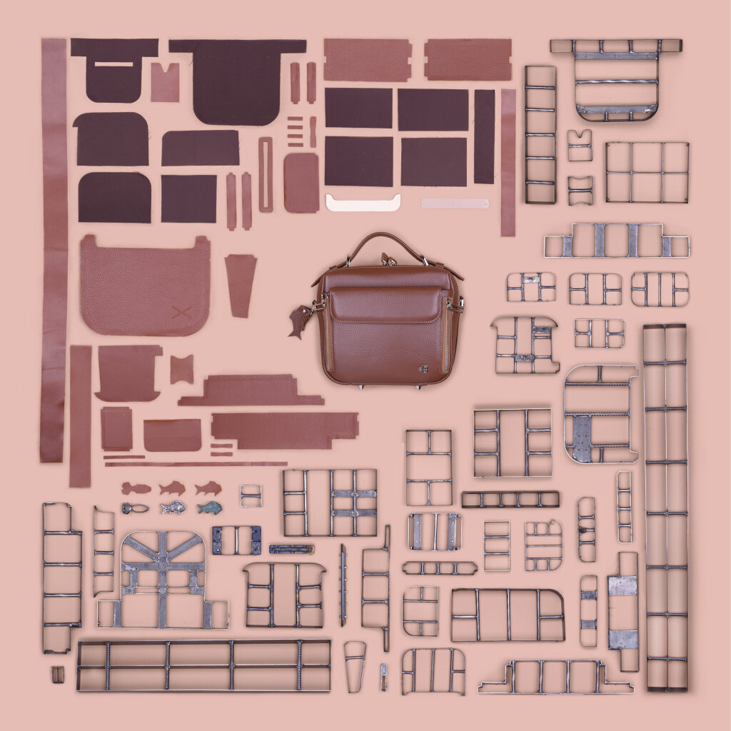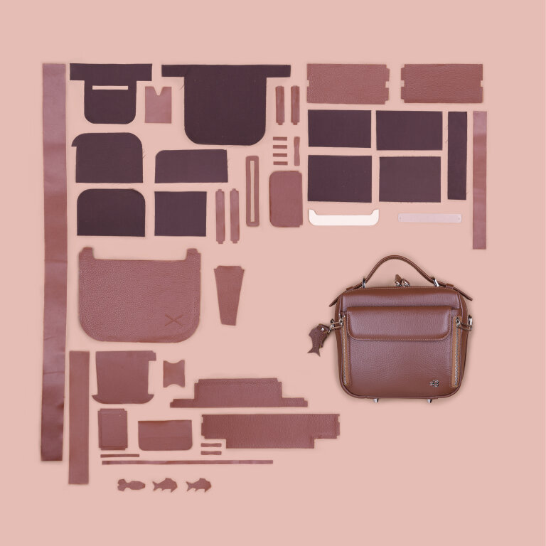 А дальше работа раскройщика — это такое собирание пазла в прямом смысле: как на эту кожину лучше уложить все резаки, чтобы осталось меньше отходов. Сначала всегда кроятся лицевые детали сумки из самой качественной части шкуры, плюс самые большие детали, так как тебе нужно поставить резак на достаточно большой кусок кожи так, чтобы на нем не было ни пороков, ни слабостей. Потом кроятся маленькие детали и внутренние части сумки.