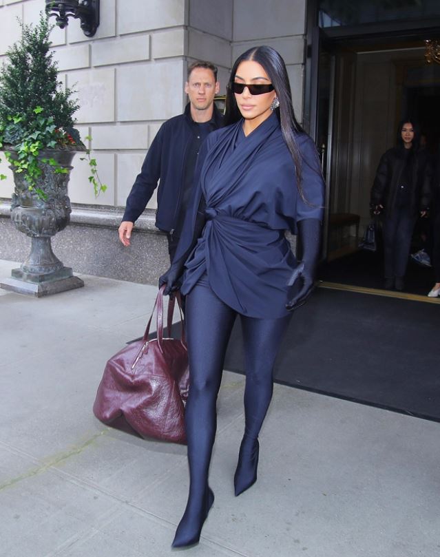 Еще одним актуальным трендом, популярность которого Ким систематически подкрепляет своими образами, можно назвать ботфорты-чулки. Сочетайте их с элегантным пальто или жакетом оверсайз и дополните чёрными солнцезащитными очками – и образ в духе Кардашьян вам обеспечен.