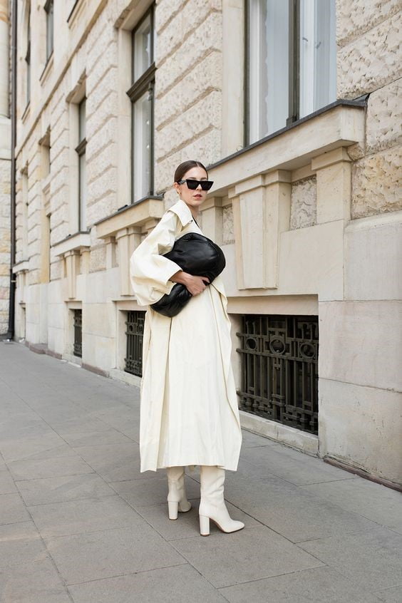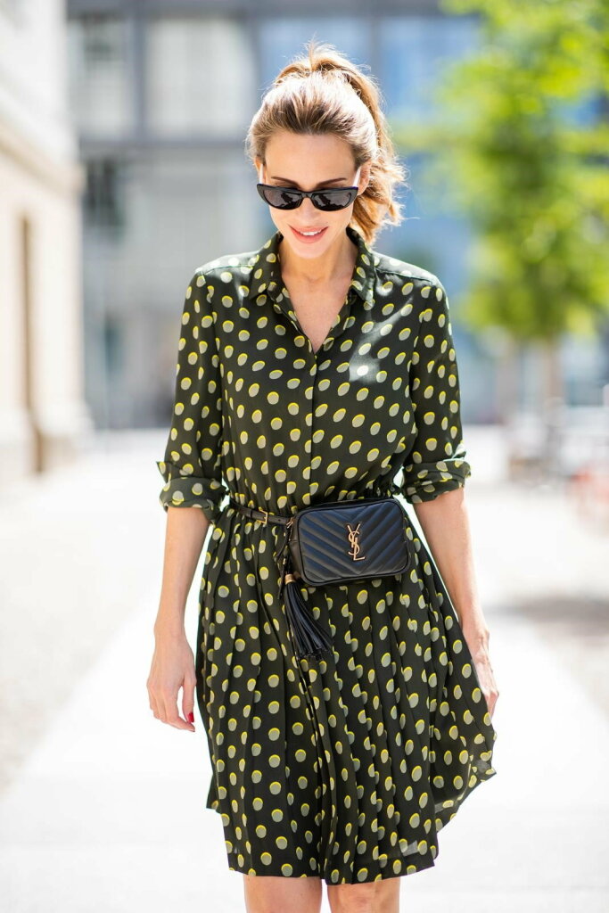 Еще один вариант для динамичных и свободных особ – поясная сумка. Такая модель идеально подойдет для городских образов в любое время года. Летом она прекрасно дополнит льняной костюм оверсайз, а зимой будет отлично смотреться как с пуховиком, так и с пальто-халатом. Однако, такая сумочка не всегда уместна во время вечерних выходов и на светских мероприятиях.