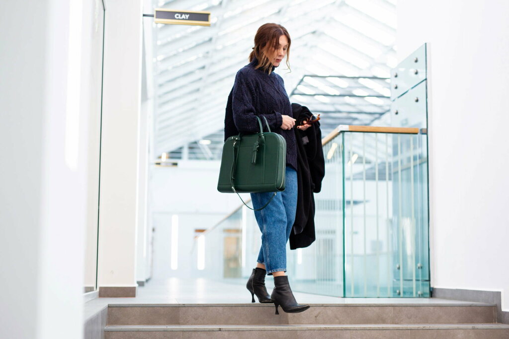 Как правильно носить такую сумку? Стоит соблюсти несколько правил, которые сделают ваш образ свежим и актуальным. Дополняя свой наряд деловой сумкой, убедитесь, что он не слишком официален и скучен. Если вам предстоит участвовать в масштабной конференции или присутствовать на важной деловой встрече, то вы безусловно можете отдать предпочтение классическому брючному костюму.