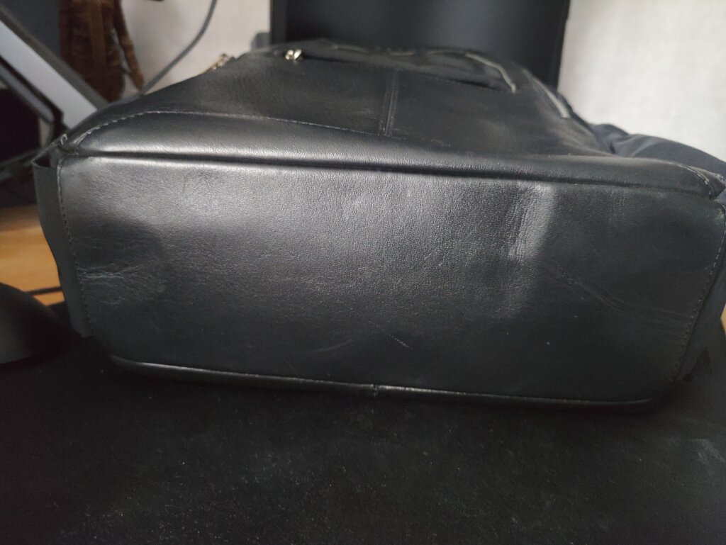 Рюкзак удобный, мне нравится. Сравним по вместительности с полностью текстильными. На лямках со временем вытирается + не очень удобная регулировка длины. Но меня он устраивает, хотя муж бухтит, что это не кожаный рюкзак 😅. Дно подзамялось, похоже используется картон. Ножек нет. Формат А4 вмещает, но без парки скоросшивателя.