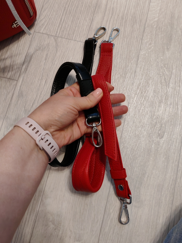 Из минусов хочу выделить длинными ремешки теперь стали, очень неудобно, сползают с плеч. Ума не приложу, что делать. Необходимую длину не сделать: снизу торчит верхняя часть ремешка, а сверху не укоротить из-за расширения на уровне плеч. Приходится с черными ходить пока.