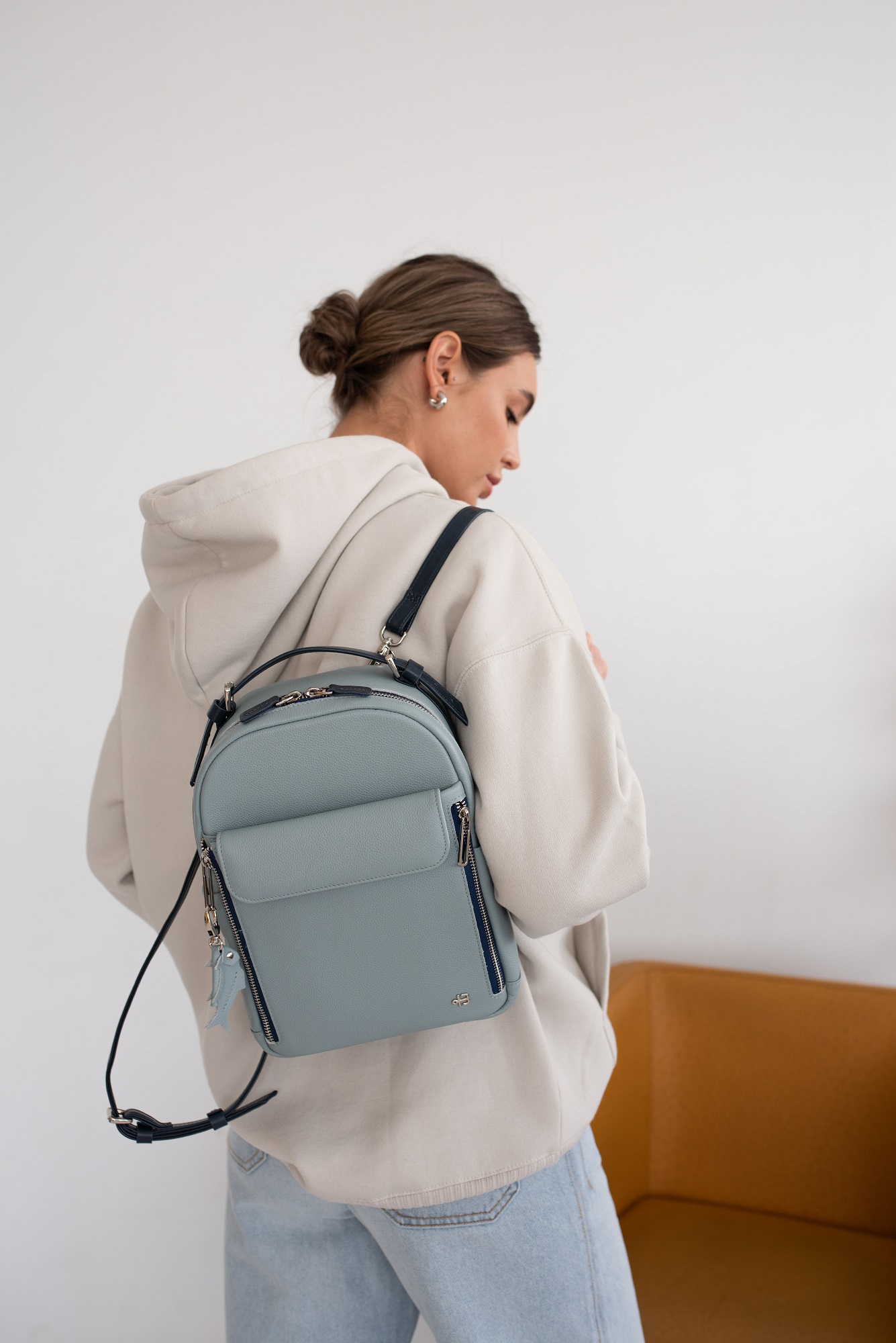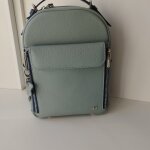 Сегодня получила рюкзак. Очень довольна! Стопроцентное попадание по цвету. Я так боялась, что он будет голубой, но он такой какой нужно: бирюзово-серый. Синяя отделка придаёт ему какое-то особенное очарование. Тонкие лямочки идеально будут сочетаться с летней одеждой. Нигде я не могла найти рюкзак именно с такими плечевыми ремнями!!!! Во внешний карман входит большой тяжелый телефон, что для меня важно. Лаконично, стильно, размер идеальный. Выглядит очень дорого. Для сорокалетней женщины то, что надо, не смотрится подростковым.