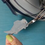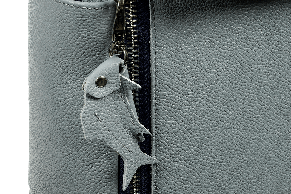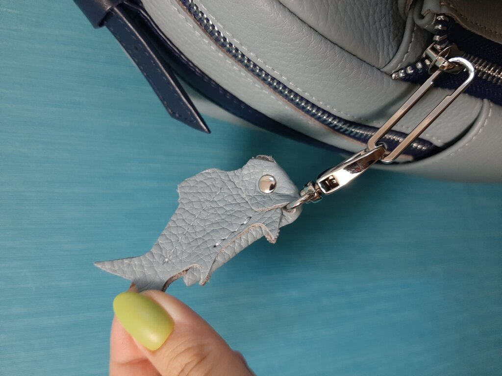 Брелок-рыбка очарователен. Рекомендую сделать его из темно-синей или черной кожи, чтобы он контрастно выделялся на фоне голубой сумки.