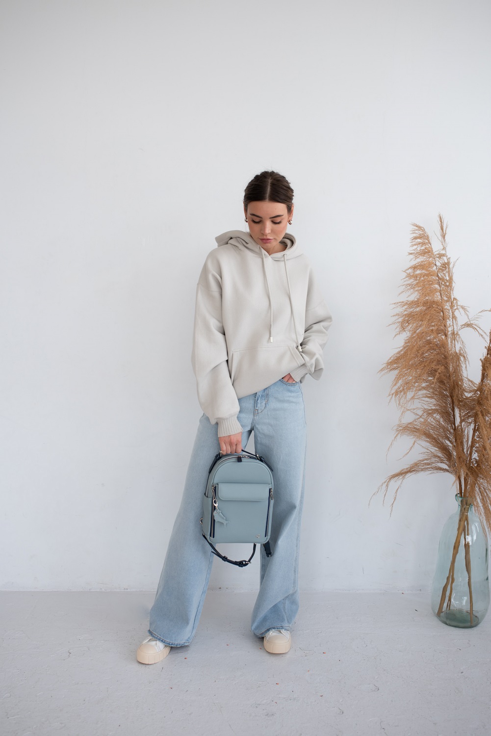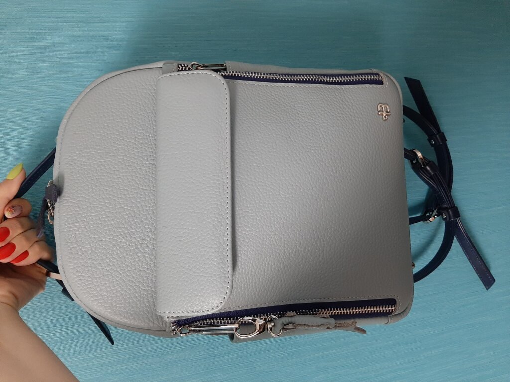 Очень признательна за такой замечательный рюкзак, каждый раз поднимает настроение чудесным кроем и небесно-голубым цветом, темно- синие лямки, серебристая фурнитура, эргономичный, продуман до мелочей, красивый и невесомый, держит форму, очень радует шнурок для ключа, теперь не ищу ключ от квартиры по всей сумке. Ждала больше месяца, но это того стоило!!! Большое спасибо!!!