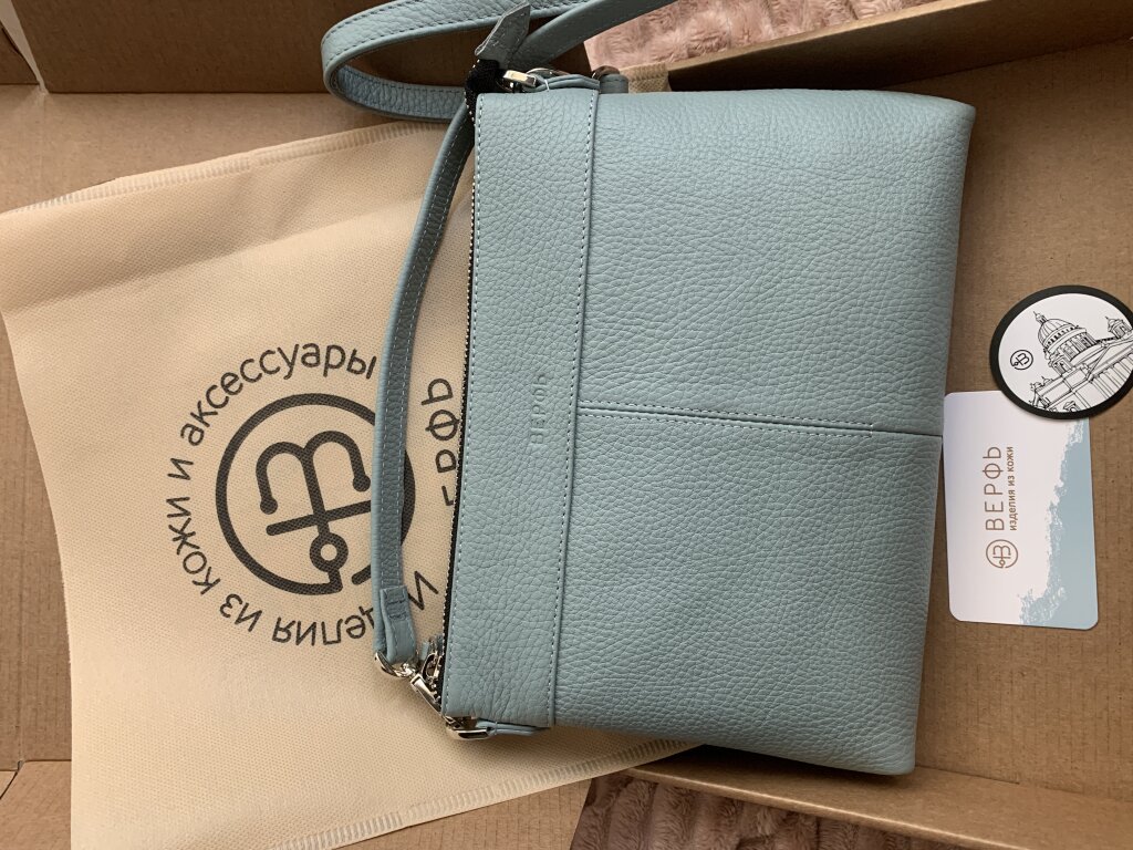 День добрый. Это мой второй Бриз. Что в первую очередь привлекает в этой сумке. 1. Сочетание размера и вместительности. При малых размерах в сумку помещаются: футляр от очков, ключница, небольшая косметичка, пропуск. А в отделение на молнии- картхолдер и наличка. Хорошего качества кожа. Мягкая и плотная. Очень универсальный цвет. Он подойдёт как на лето, так и на межсезонье. И отдельный респект за ремешок. Ну очень аккуратно сделан. Спасибо Верфи
