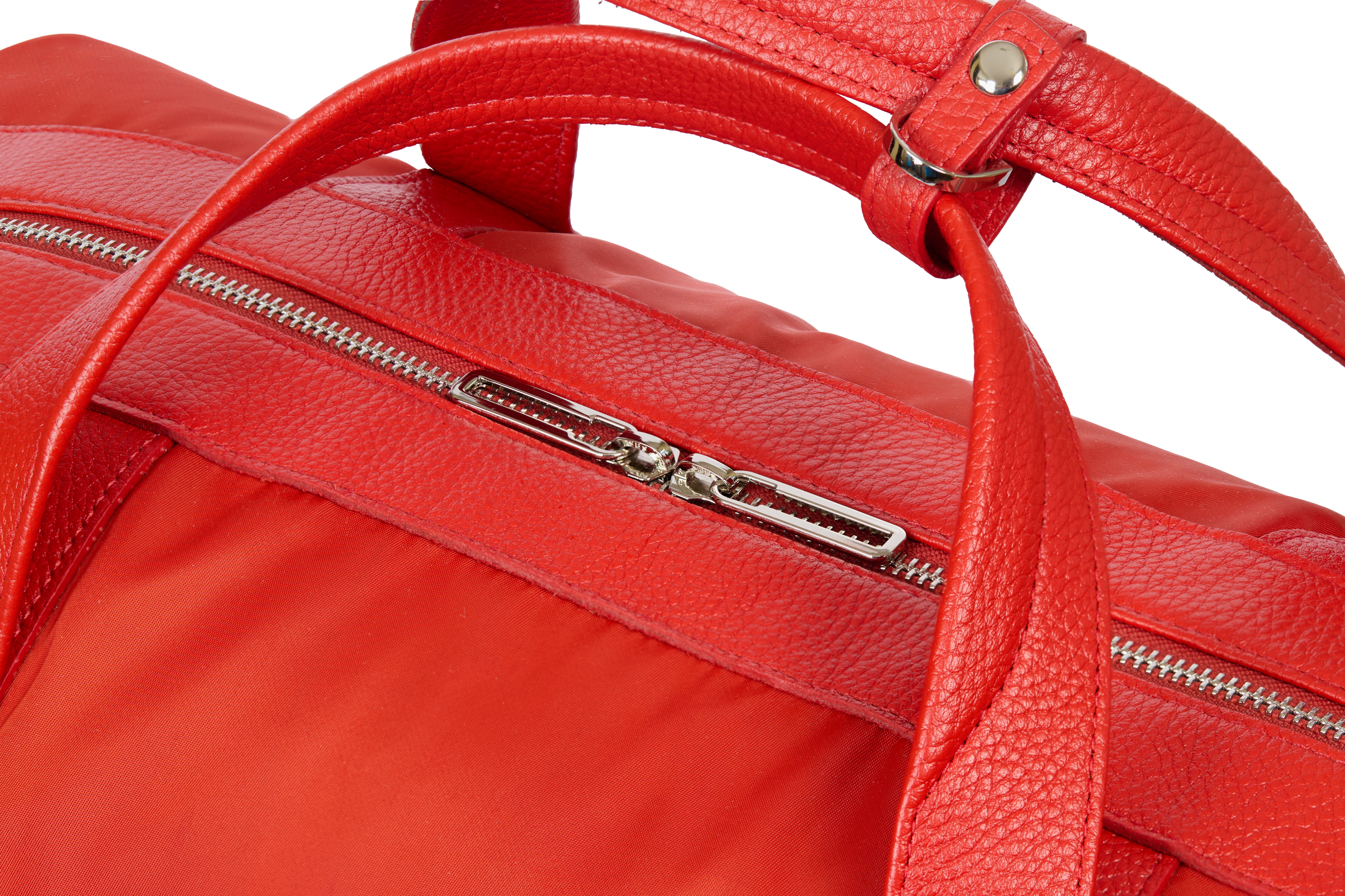 Планировали зеленую, но надо было срочно приобретать и была в наличии красная. По качеству все прекрасно и удобно! Очень удобный размер. Все поместилось, что нужно было в дорогу. Конечно очень яркая, но это и удобно: нигде сумку не оставишь, сразу видишь где она и дети не потеряют тебя из вида. Она как фонарь.