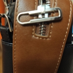 3. Есть внешний карман. Он хорош всем, но не молнией. Нет, она работает хорошо, просто с учетом того что в сумке есть ручка для носки на плече — хотелось бы иметь возможность, отстегнув дальний (на другой стороне от внешнего кармана) карабин, — убрать эту ручку (ремень) в этот внешний карман. Сейчас убрать тоже можно, вот только молнию вы не закроете. Потому что бегунок открывает молнию в сторону крепления карабина и положенный, но не отстегнутый от ближнего (на стороне кармана) карабина ремень не дает закрыть карман. Приходится таскать в руках. Решение: перешить молнию чтобы бегунок открывал молнию от ближнего крепления карабина.