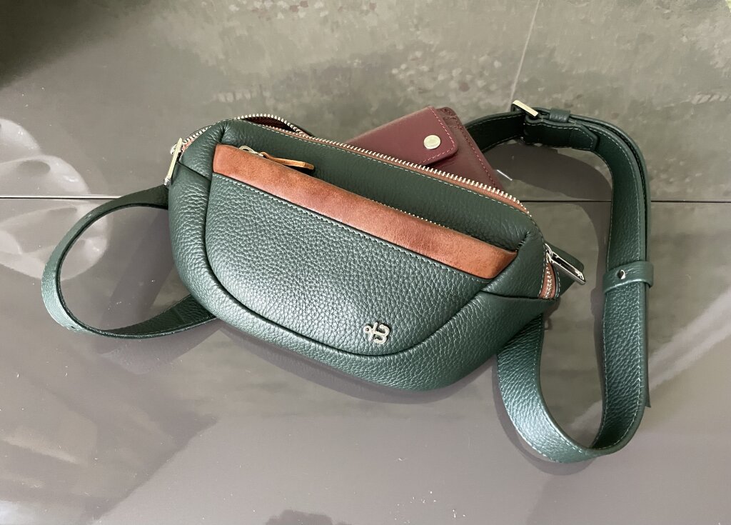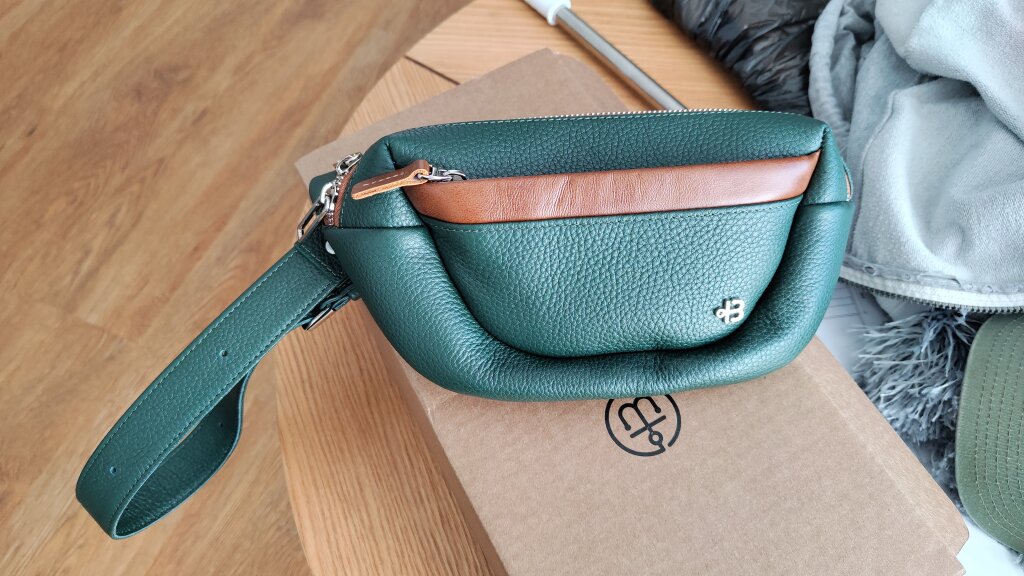 долго смотрела на рапану, думала, а не нало было. надо было сразу брать, как только вышла)) это любовь. стильная, любимая зелено-коричневая расцветка, влезает очень многое — салфетки, телефон, ключи, кошелек, наушники, паспорт, блеск для губ. давно хотела что то более женственное чем bumbag, под юбки, платья. но примерил муж, и рапана и на нем смотрится шикарно)) кажется будем носить по очереди, тем более длина ремешка позволяет)) спасибо большое за Вашу работу))