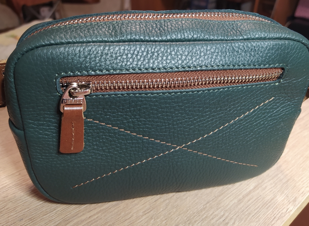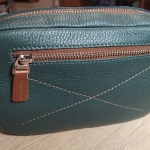 Купила два бумбага — этот зеленый и коричневый. Себе и мужу. Думала, поделим мирно.И именно зеленый оказался яблоком раздора. Понравился обоим! Невероятно красивая и уютная, вместительная, кармашек, удобный ремень. А вот коричневый огорчил…кожа жестковата, судя по глянцу легко царапается… Лучше б взяла два зеленых…:-(