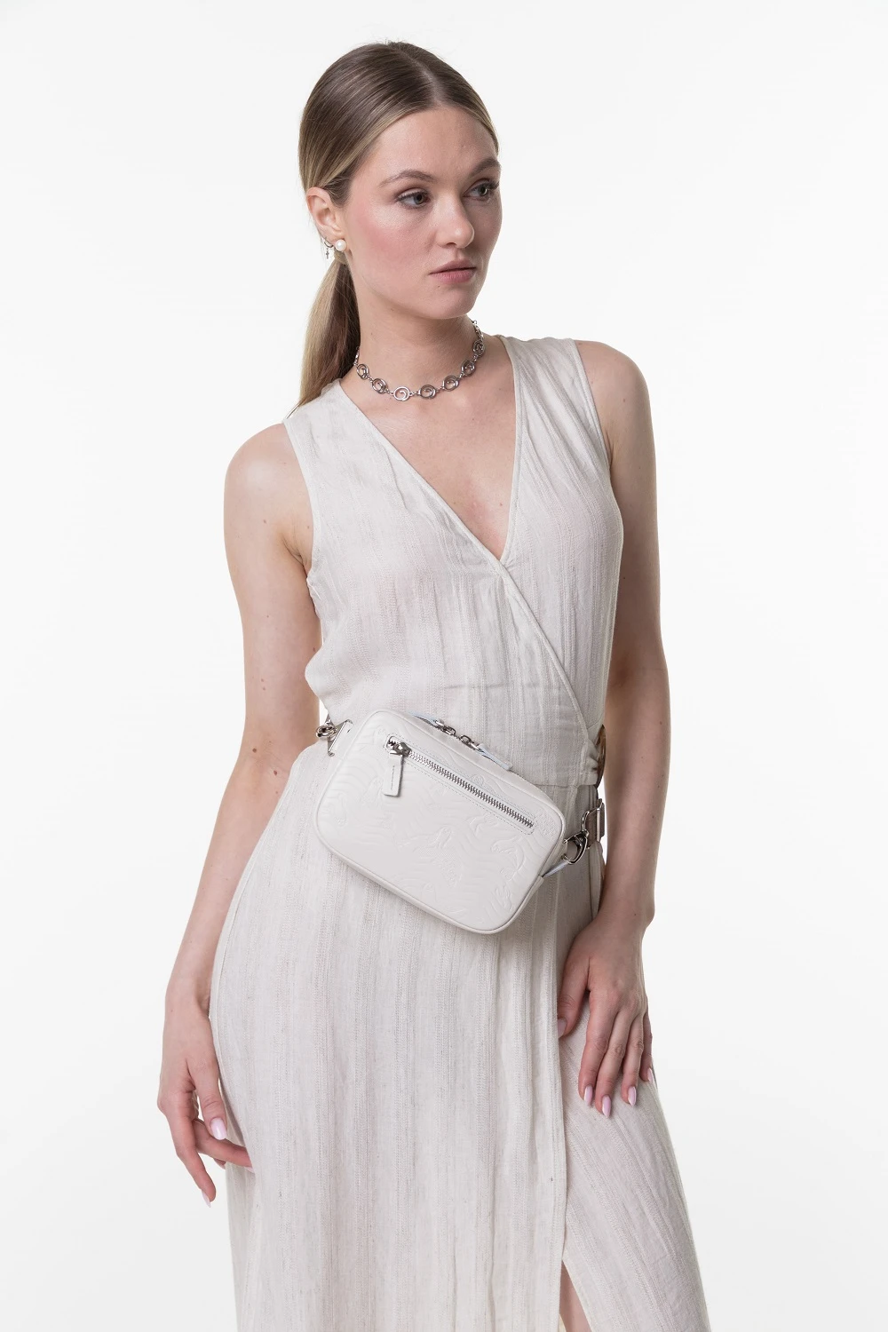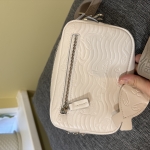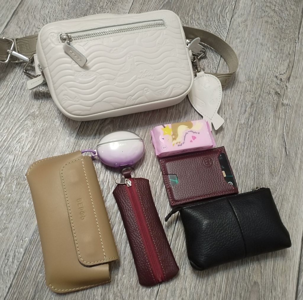 Сумочка милейшая. Небольшая, аккуратная, тактильно очень приятная. Я как «хламушница» , думала всё самое необходимое не смогу уместить , но оказалось, что вмещается в неё предостаточно! Косметичка, очечник, салфетки, наушники, картхолдер и ключница 👌🏼 И кстати, цвет не кипельно белый, а такой нежный Айвори …