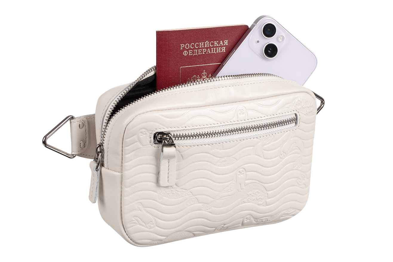 Нерпа — это в самое 💓. Светлая на лето, серая на зиму. Очень вместительная, ключи,салфетки, картхолдер,телефон и даже мини-косметичка, все влезает. И удобно,что руки свободные. А тиснение на коже — это отдельная любовь.