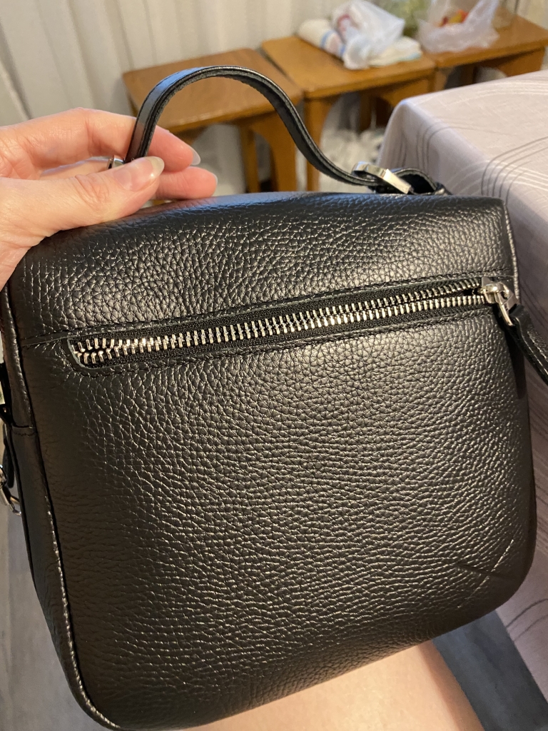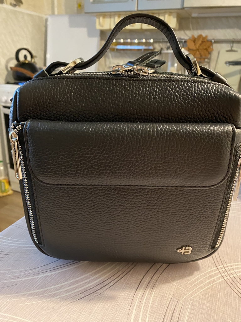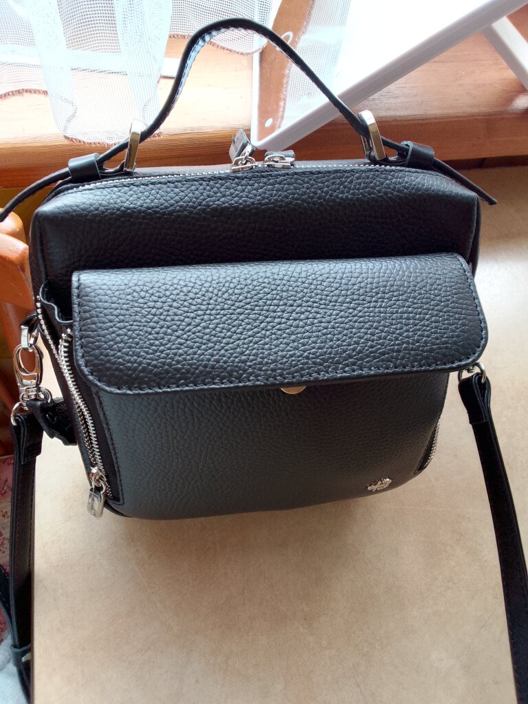 Это сумочка моя вторая покупка. Сначала купила такую же бежевую, но поняла, что нужна ещё и чёрная. Очень удобная, вместительная, много карманов. Все продумано. Спасибо!!