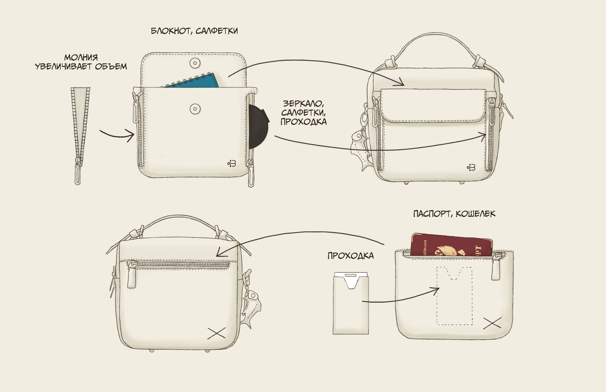 Спасибо, что поделились впечатлениями! Рады, что Вам очень понравился функционал сумочки)