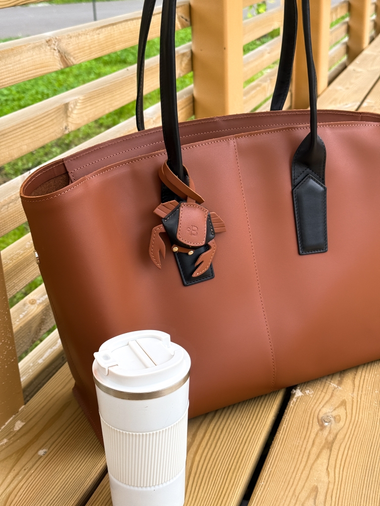 Идеально вместительная, супер базовая сумка, которая впишется в любой образ. А этот милый крабик приковывает взгляды ❤️