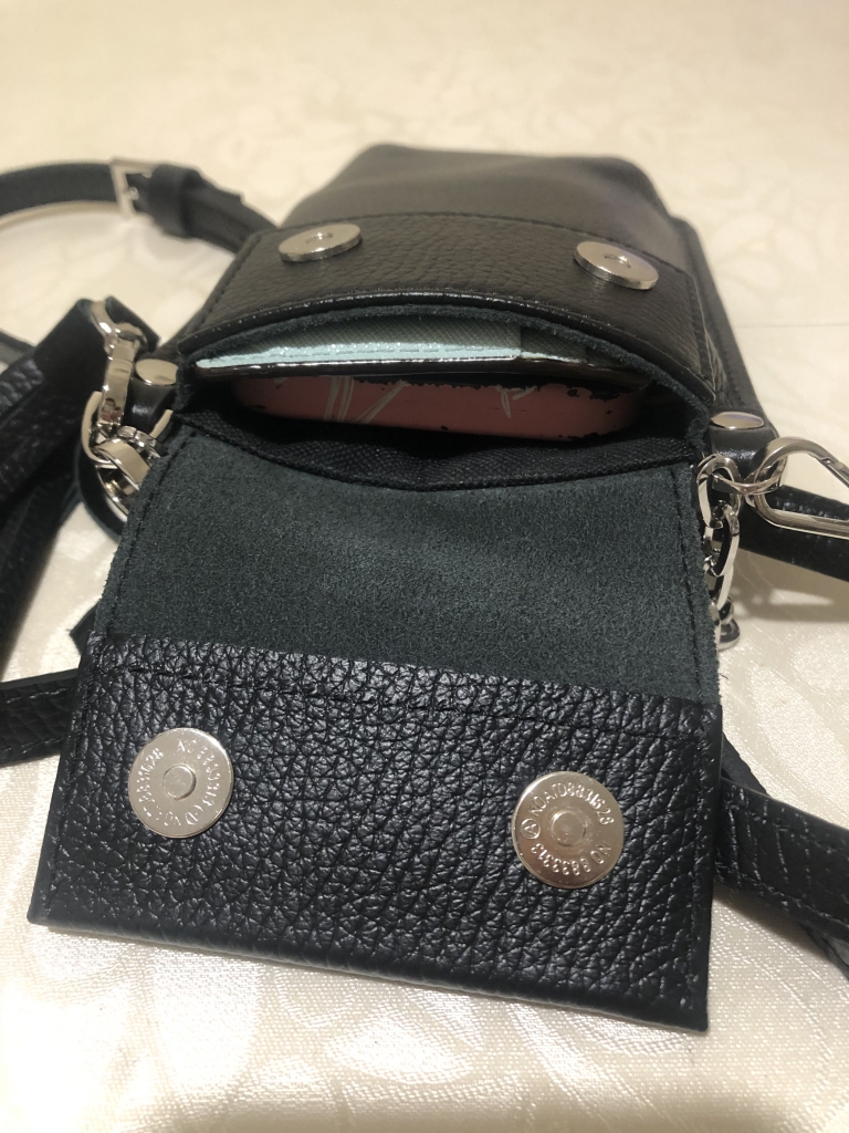 Очень удобная, лёгкая и компактная сумка. Незаменимая вещь в офисе, если наряд без платьев, а по офису нужно бегать с телефоном и пропуском/ карточкой для столовой) ну и если любите гулять со свободными руками. Если смартфон большой, то больше ничего не влезет. Если старый кнопочный телефончик, то ещё влезут ключи)