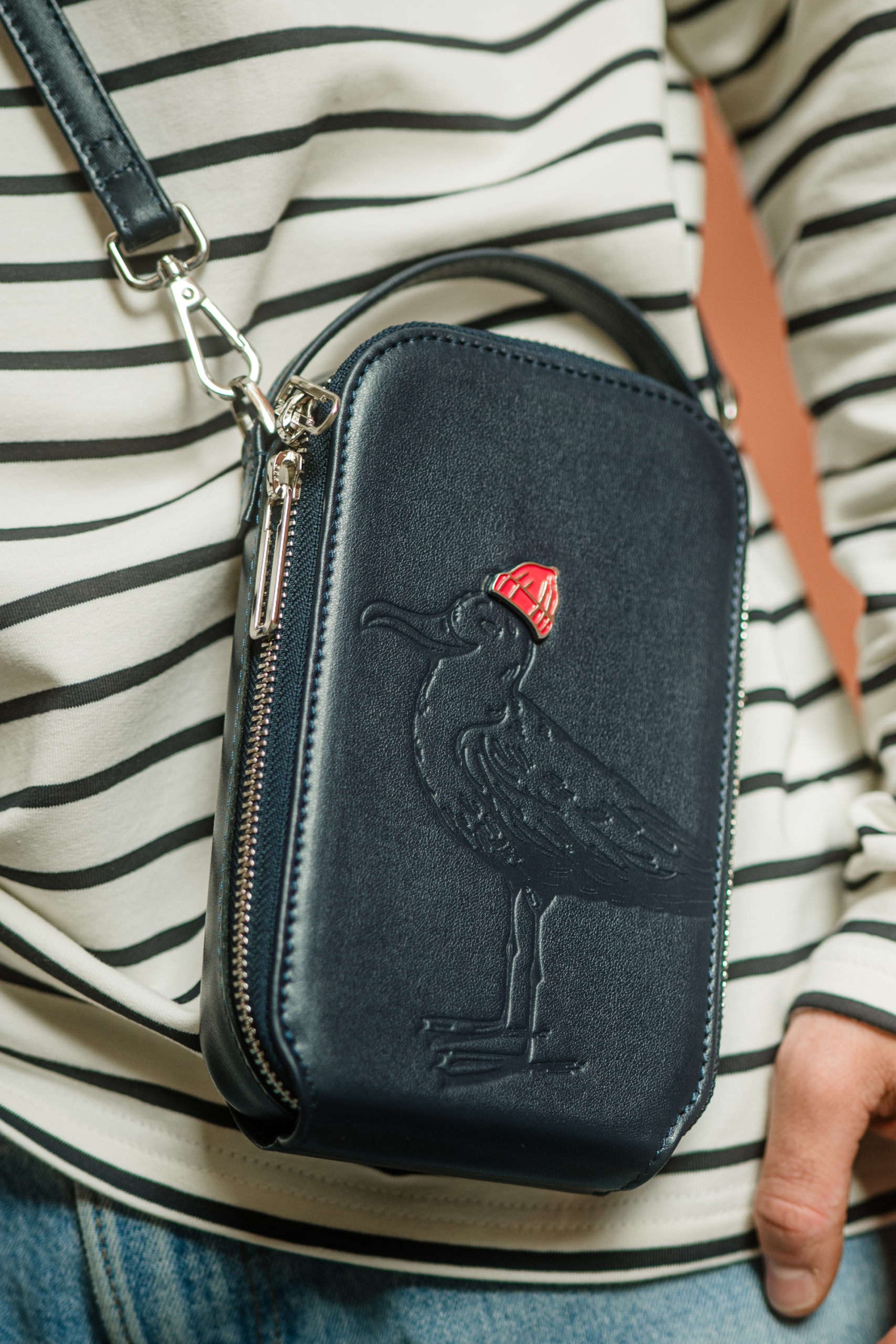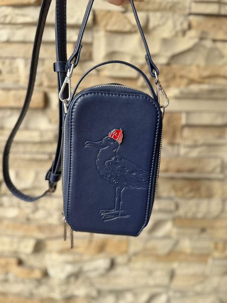 Сумка очень удобная. Поместился телефон, солнцезащитные очки, подорожник и карты. Чайка в шапочке украсила сумку.