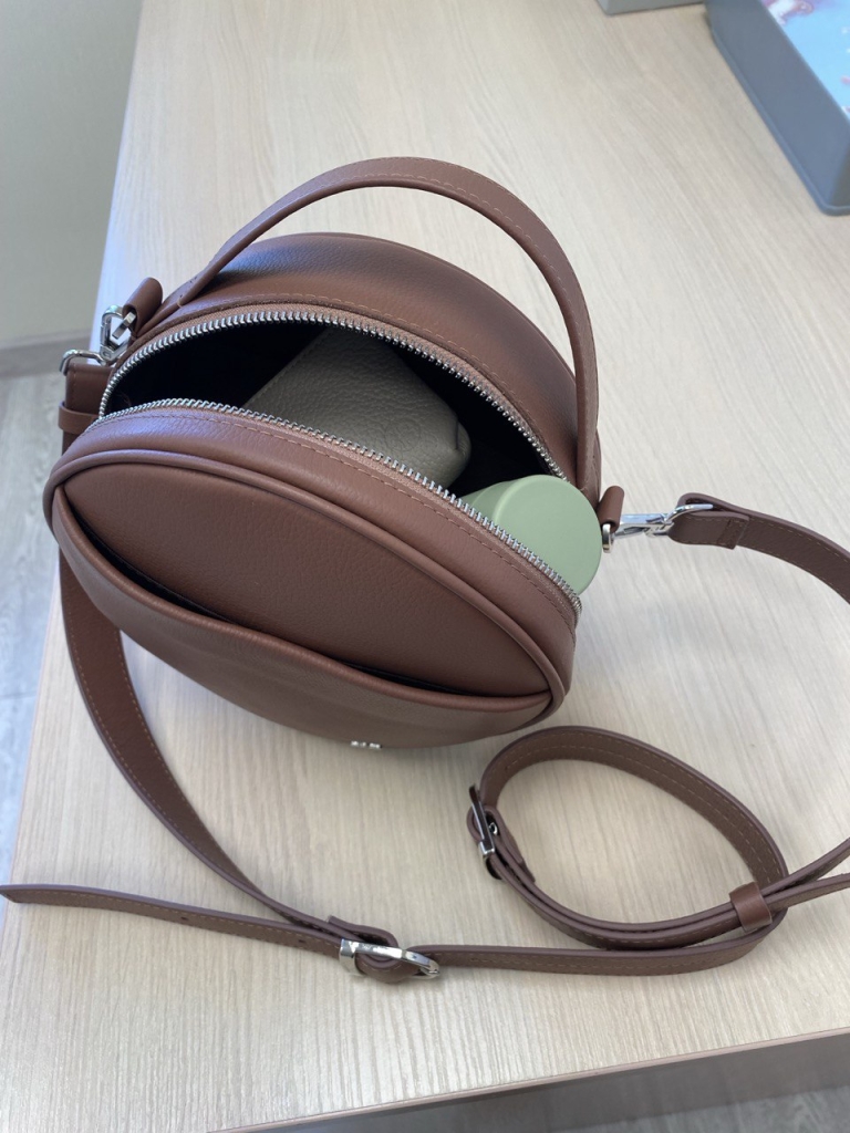 Лучше одного кругляша может быть только два!💚🤎 Мокка мусс- ооочень приятный матовый цвет молочного шоколада 🍫, прекрасно и на лето и на осень и круглый год. Единственная просьба- добавьте пукли (ножки) на дно, так сумочка будет ровнее стоять и дно сохранит. А вообще- абаааажжаю🥰