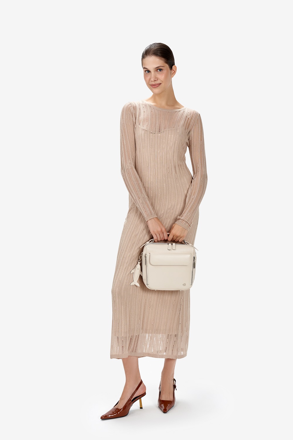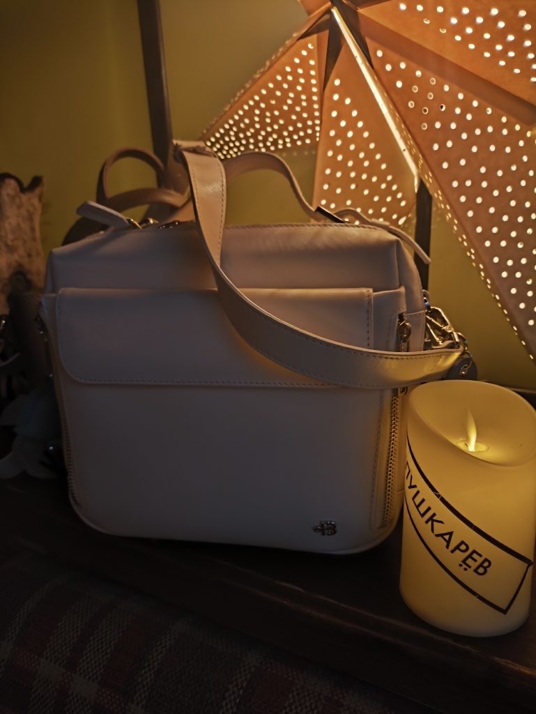 Очень понравилась сумочка! Размер то, что надо. Очень порадовало полное раскрытие по молнии. Удобные кармашки и регулируемый ремень добавляют универсальности. Цвет топленого молока радует глаз. Спасибо