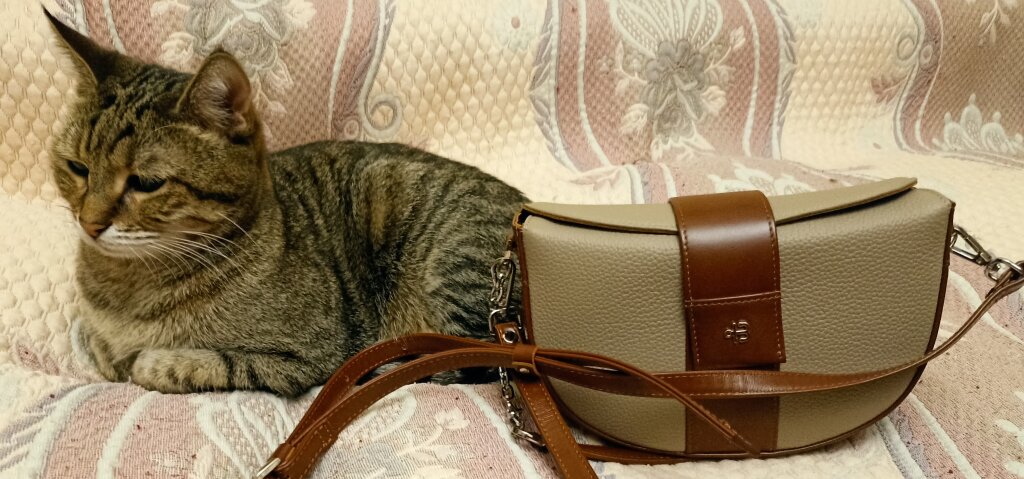 Сумка очень понравилась. Выглядит дорого и стильно. Походит под многие вещи. Кот Тихон, видимо, тоже оценил.