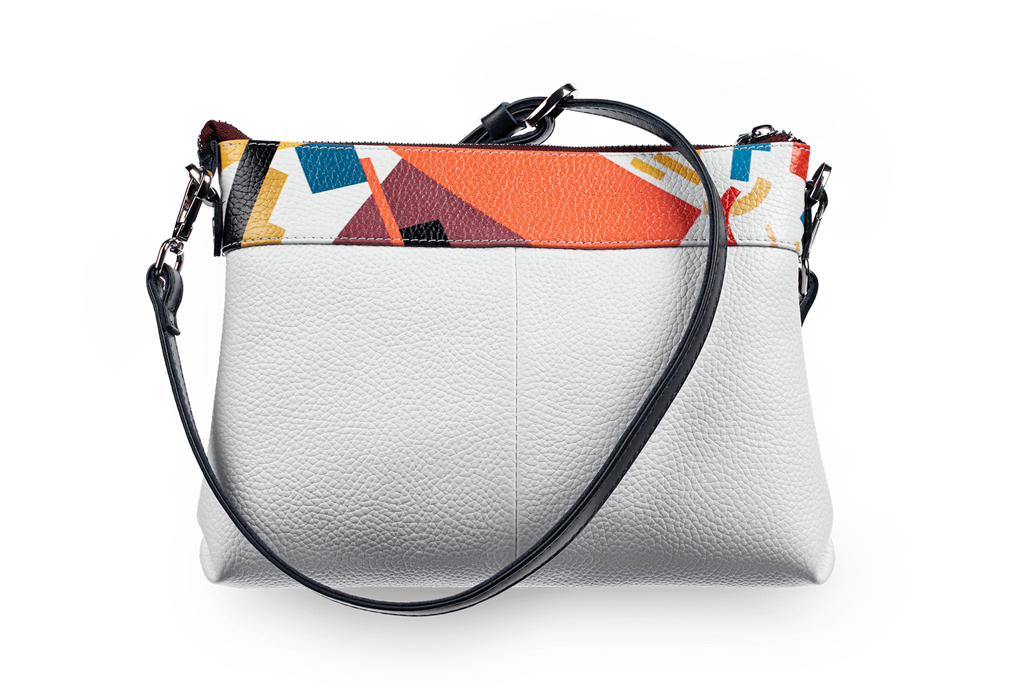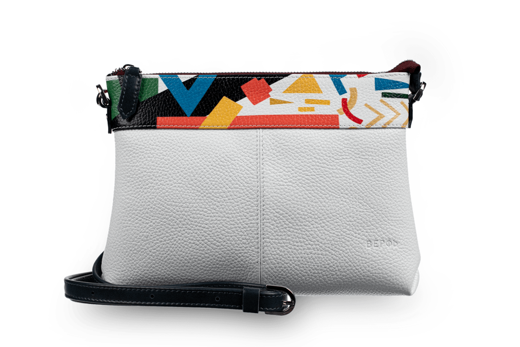На лето я подыскивала легкую и небольшую белую сумочку кросс-боди, и когда увидела Бриз Malevich на сайте Верфи, то для знакомства решила остановиться на ней. Увы- в абстрактном искусстве я не разбираюсь и к Малечичу, в частности, не испытываю особой тяги, но сочетание цветов с картины и белоснежной кожи создает настолько радостное и легкое впечатление, что… эту сумочку просто не хочется выпускать из рук!