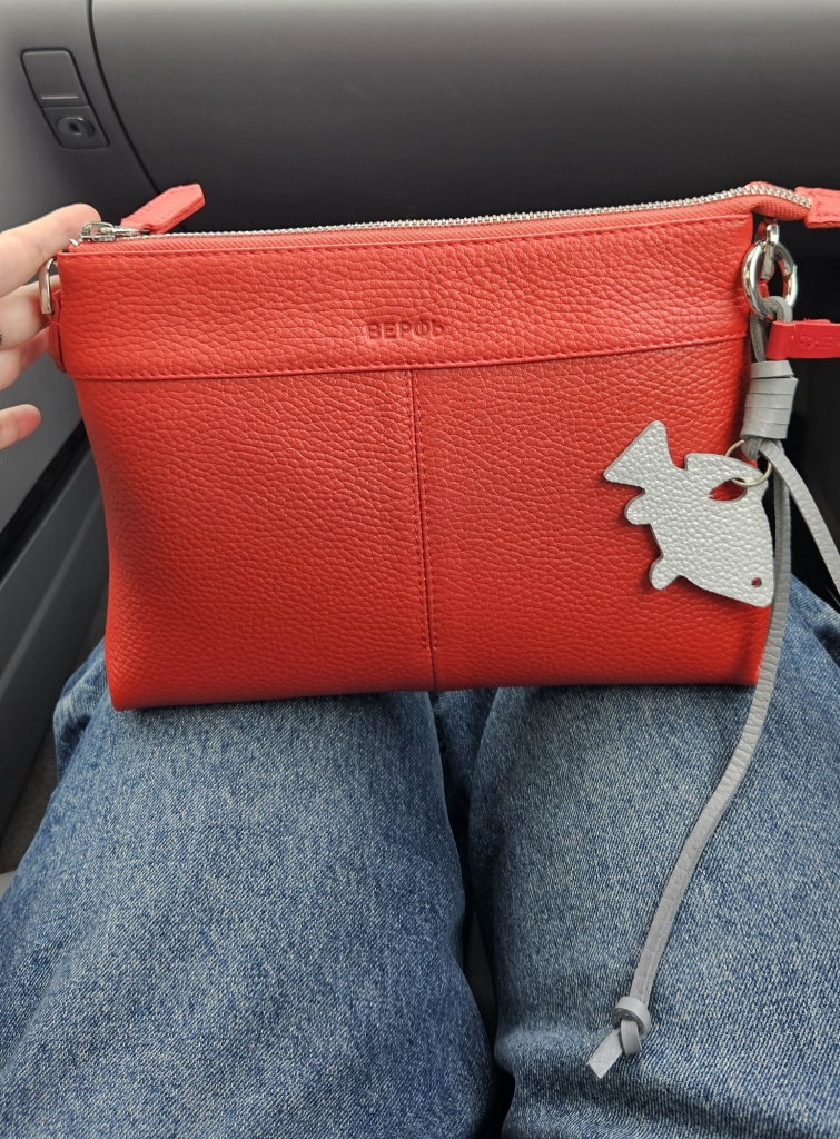 Сумочка Бриз у меня не первая, есть орех и синяя. Красную купила в коллекцию. Цвет не понравился, люблю диоровский красный, он хорошо сочетается с зеленым и фуксией. Этот оттенок красного теплый, ближе к оранжевому.