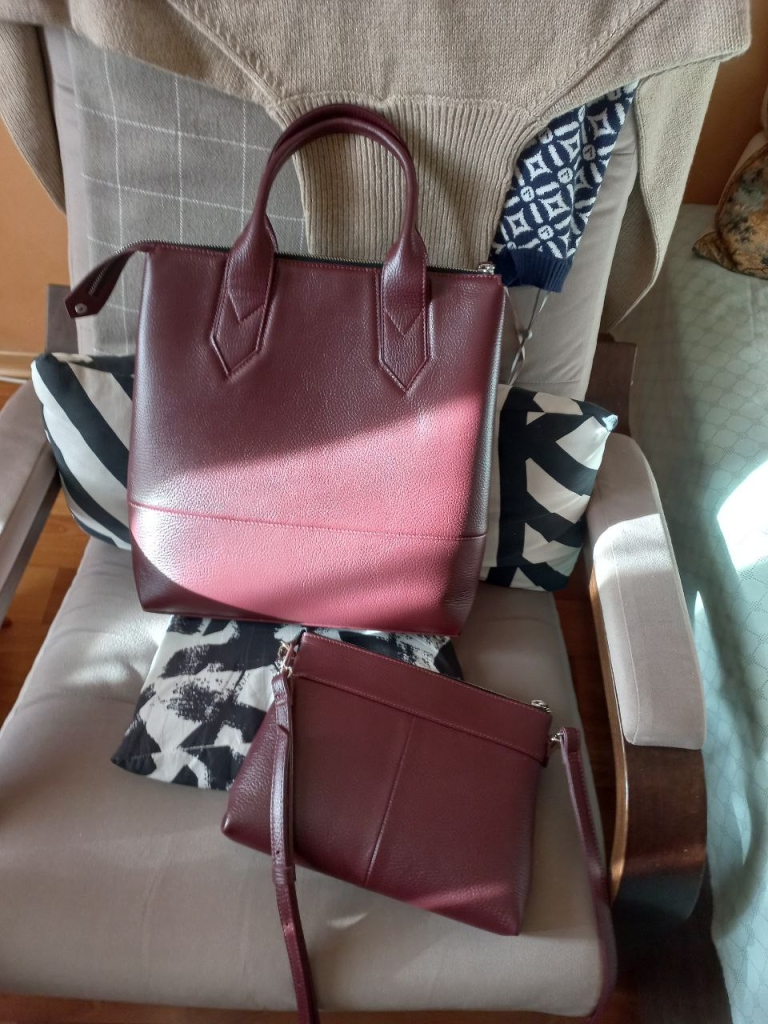 Сегодня забрала мою прелесть. Сумка идеальная, отличный размер и большой и маленькой сумки, красивый винный цвет, идеальные швы. Очень приятная тактильно.
