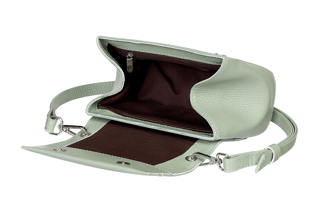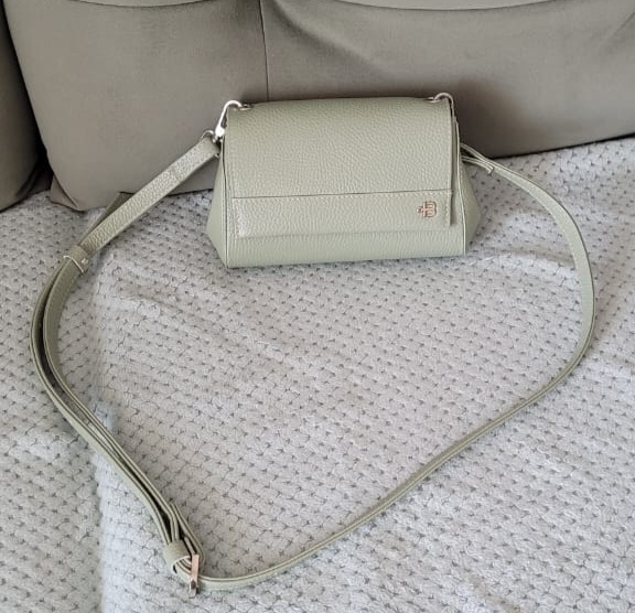 Плюсы: компактный размер, влезает телефон, ключи, немножко женской мелочи :) Приятная кожа, фурнитура. Посадка, как прикреплен ремешок. Сначала сомневалась по поводу цвета MINT, но по итогу осталась очень довольна.