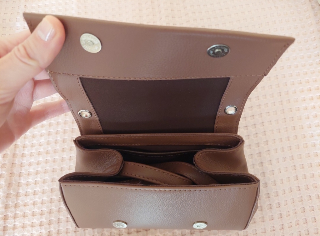 Получила свою Муссельку цвета мокко. Такая хорошенькая малышка! А цвет — слюнки текут. Молочная шоколадка! Но, несмотря на миниатюрность, она довольно вместительная. И даже три кармашка для мелочей и карточки. Просто прелесть! Спасибо за очередную радость)) Успехов!