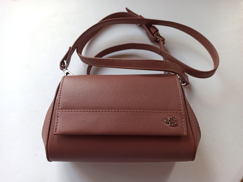Сумочка замечательно со всех сторон: невесомая, вместительная, красивущая, тактильно невероятно нежная! Хочется её трогать и носить, не снимая). Качество пошива высочайшее. Для меня один небольшой неприятный нюанс, не знаю, у моей только или так задумано, шлевка для заправки кончика ремешка очень широкая, кончик болтается, шлевка сползает. Складываю кончик ремня вдвое, тогда ок. И все равно рука не поднимается снизить оценку, настолько она мне нравится. Спасибо!