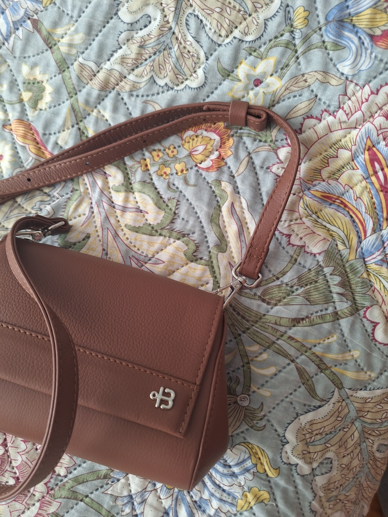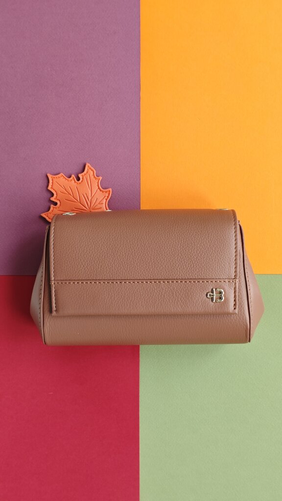 Приобрела Mussel Mocha Mousse в начале лета, но цвет показался скорее теплым осенним, поэтому начала «выгуливать» сумочку только в сентябре. Цвет очень приятный, действительно, камера его плохо передает, по моим ощущениям: молочный шоколад с розоватым отливом. Несмотря на маленький размер, сумочка вместила все, что на фото. Считаю, что при соответствующем стиле и цветовом решении одежды может использоваться и как вариант «на выход». Качество исполнения, как всегда у Верфи, на высоте!